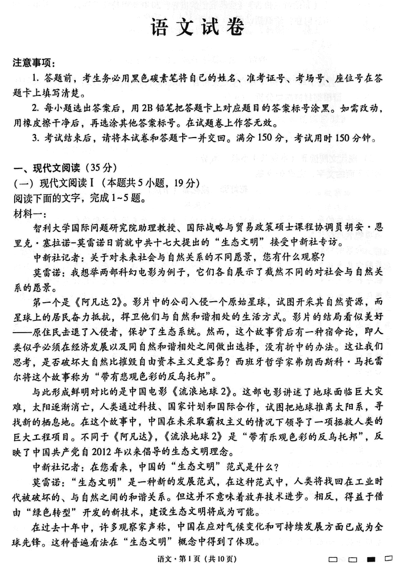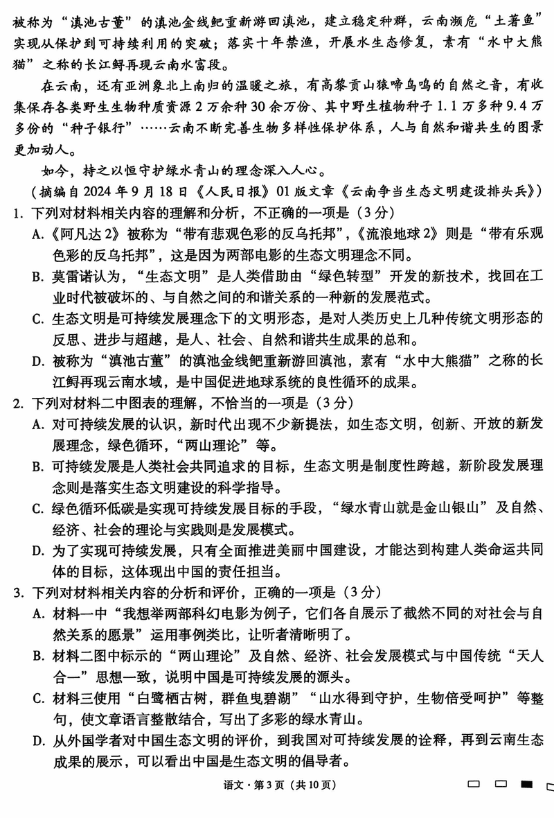 云师大附中2024-2025学年高三高考适应性月考(六)语文试题及答案