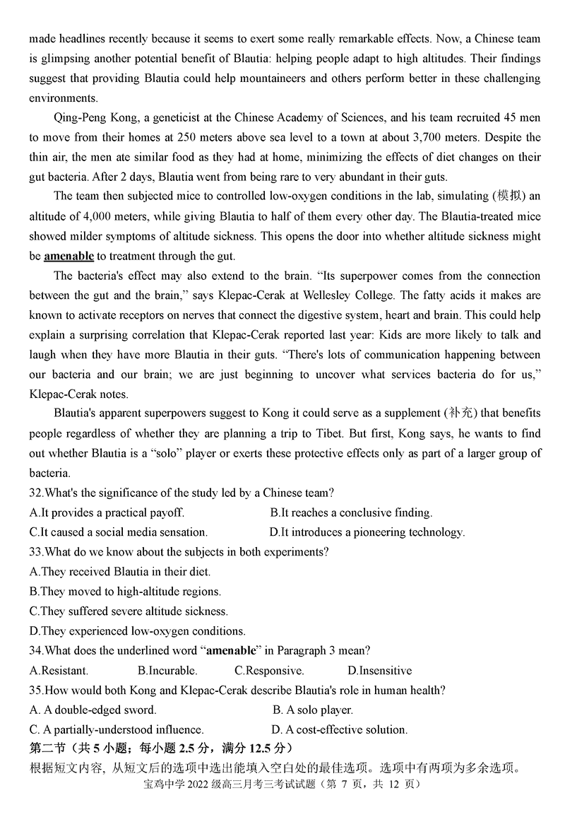 陕西宝鸡中学2025届高三12月月考三英语考试已于近日开考,为方便考生考后及时查看考试情况,查漏补缺、弥补不足,本文整理了试题答案解析相关信息!