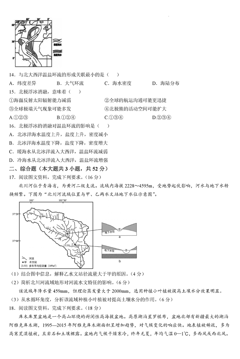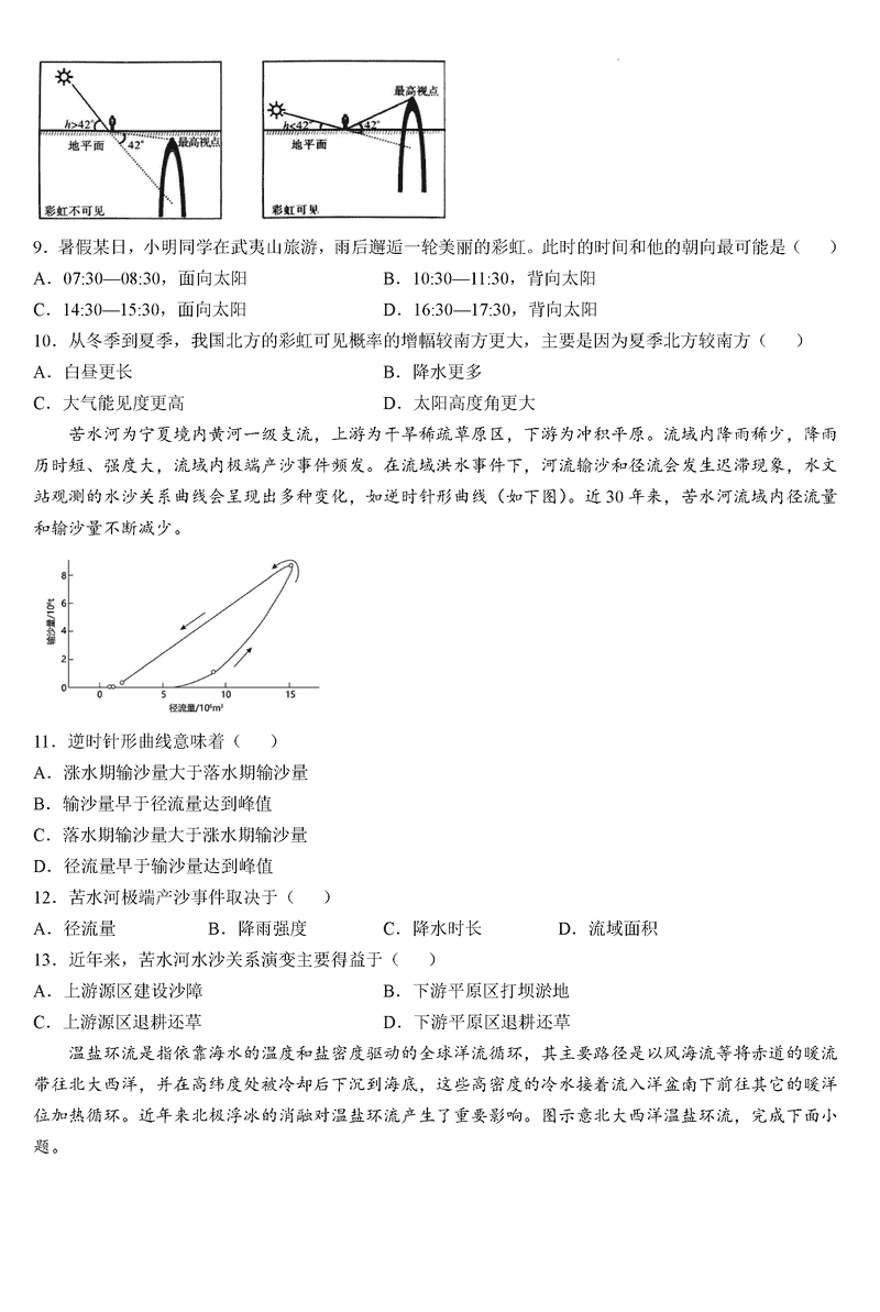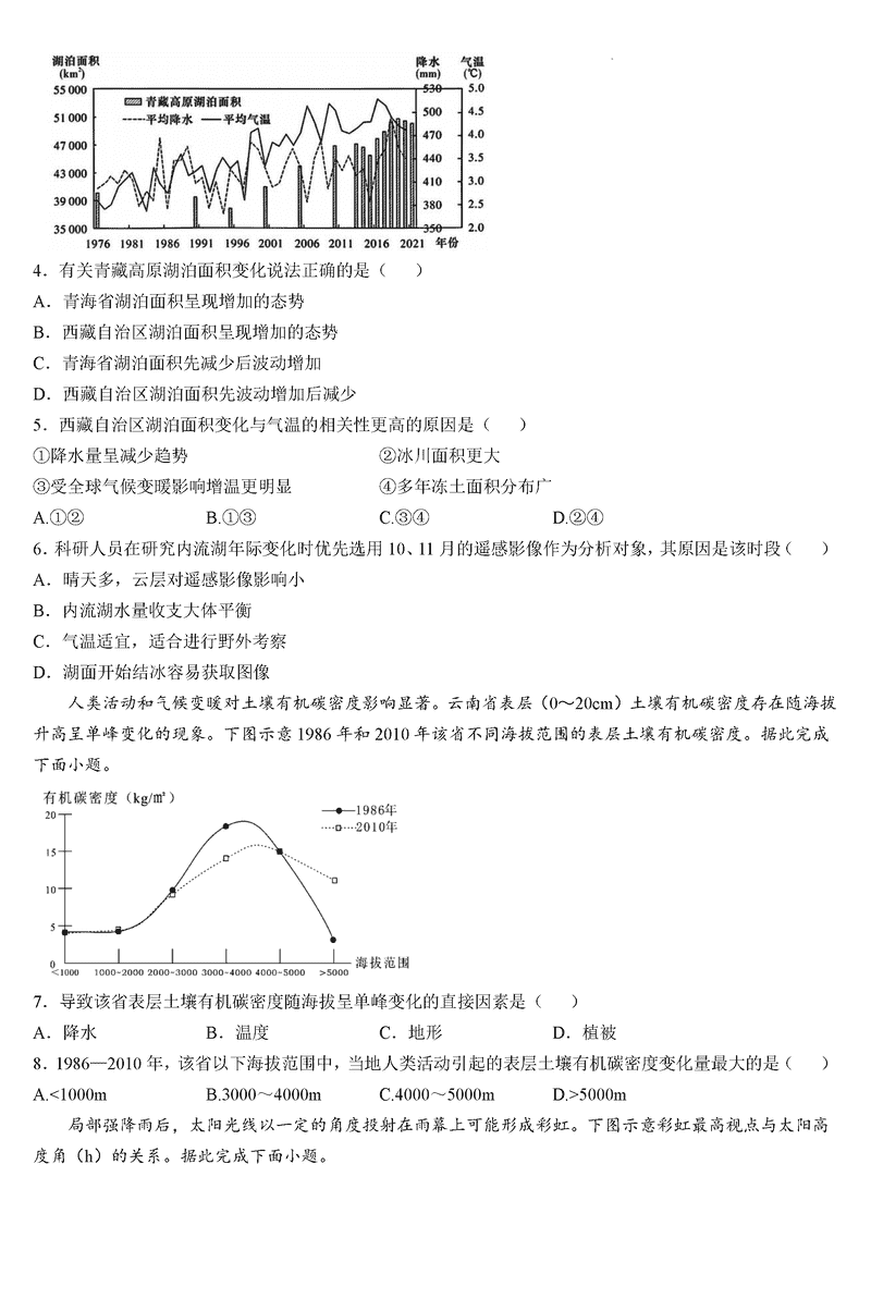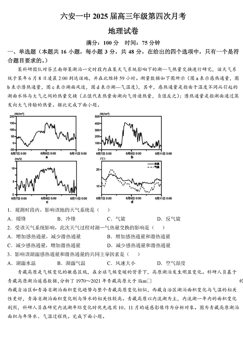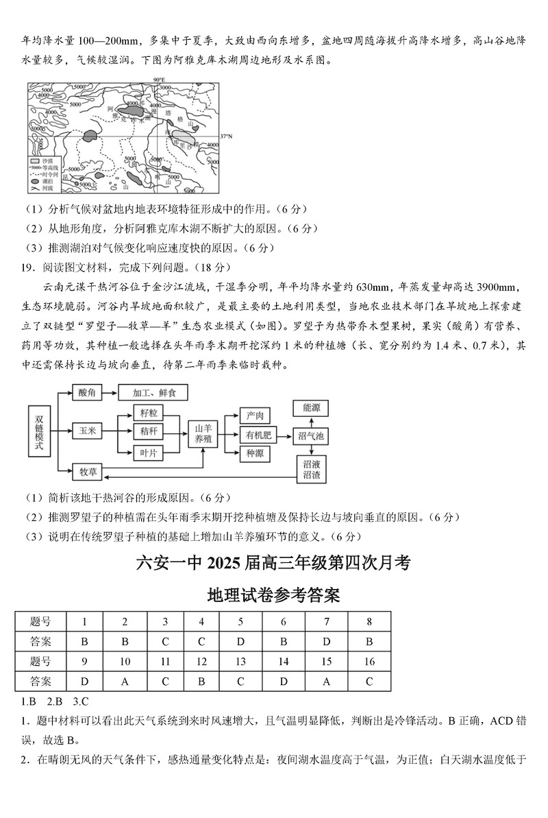 六安一中2025届高三第四次月考地理试题及答案