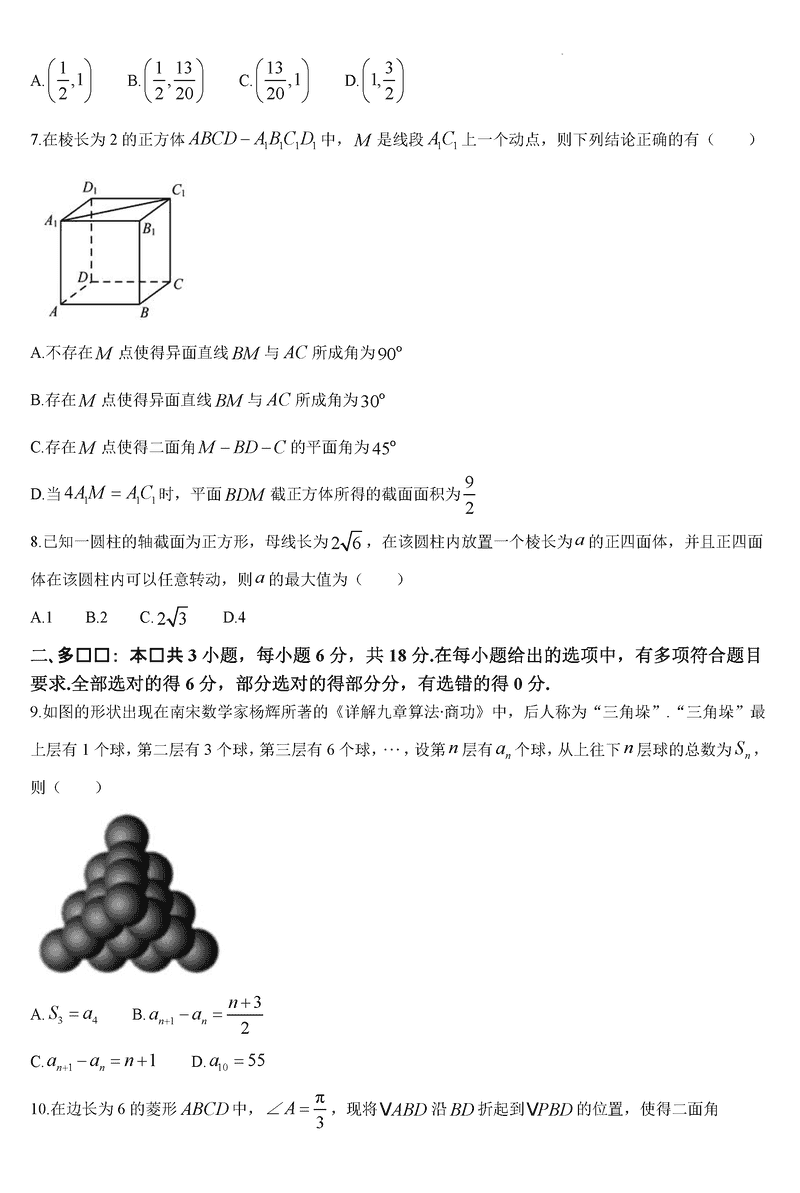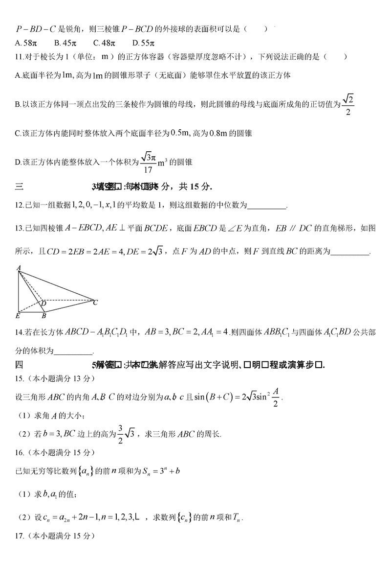 六安一中2025届高三第四次月考数学试题及答案