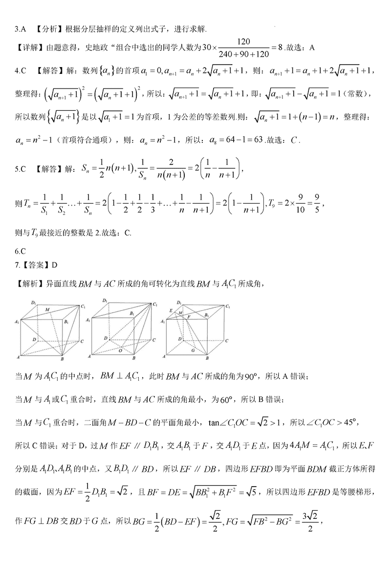 数学试题及答案解析