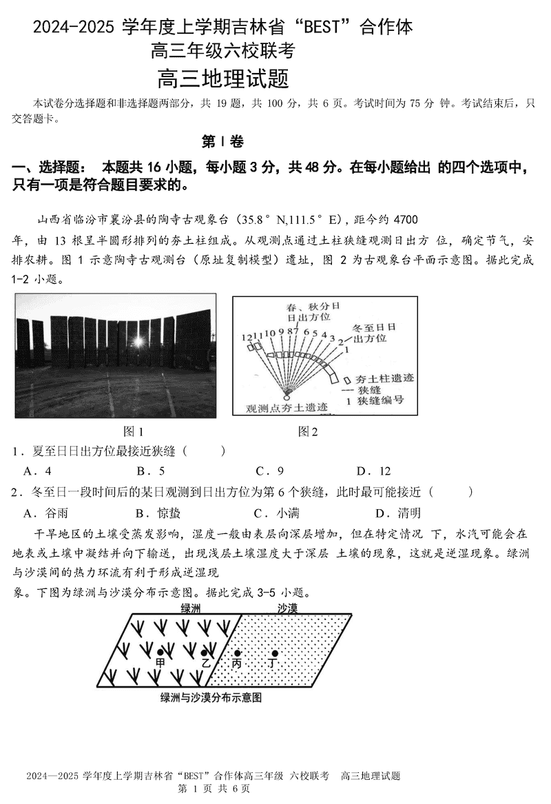 吉林BEST合作体六校2025届高三上学期第三次联考地理考试已于近日开考,为方便考生考后及时查看考试情况,查漏补缺、弥补不足,本文整理了试题答案解析相关信息!