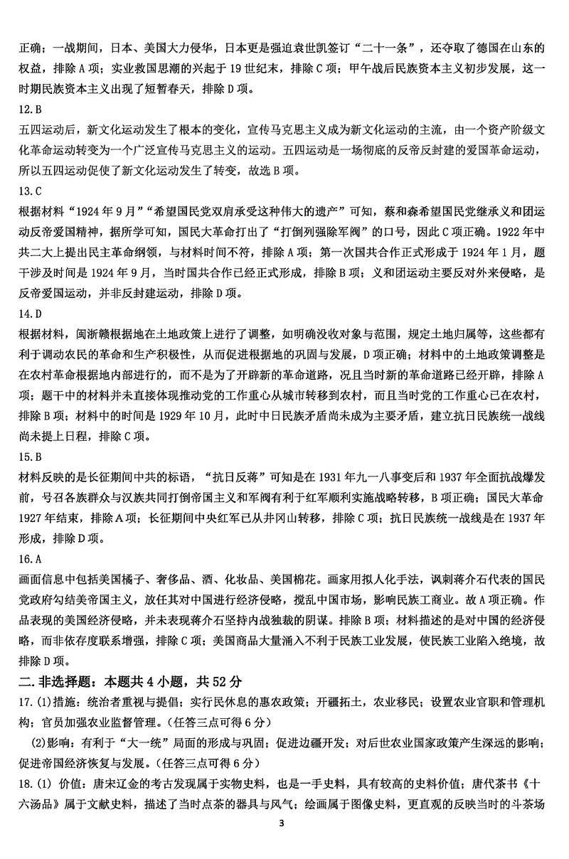 历史试题及答案解析