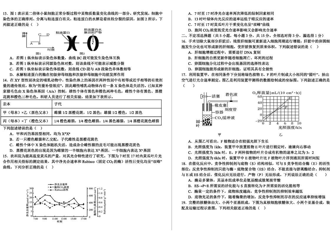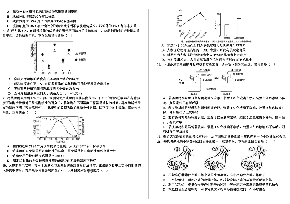 吉林BEST合作体六校2025届高三上学期第三次联考生物试题及答案
