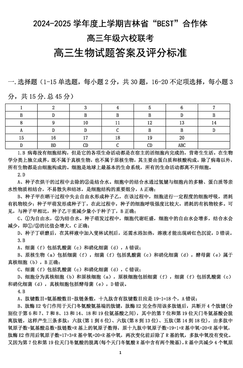 吉林BEST合作体六校2025届高三上学期第三次联考生物考试已于近日开考,为方便考生考后及时查看考试情况,查漏补缺、弥补不足,本文整理了试题答案解析相关信息!