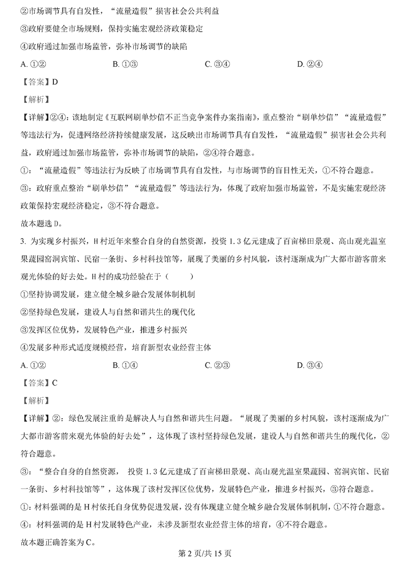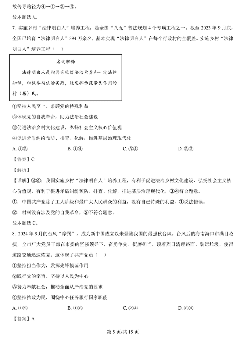 政治试题及答案解析
