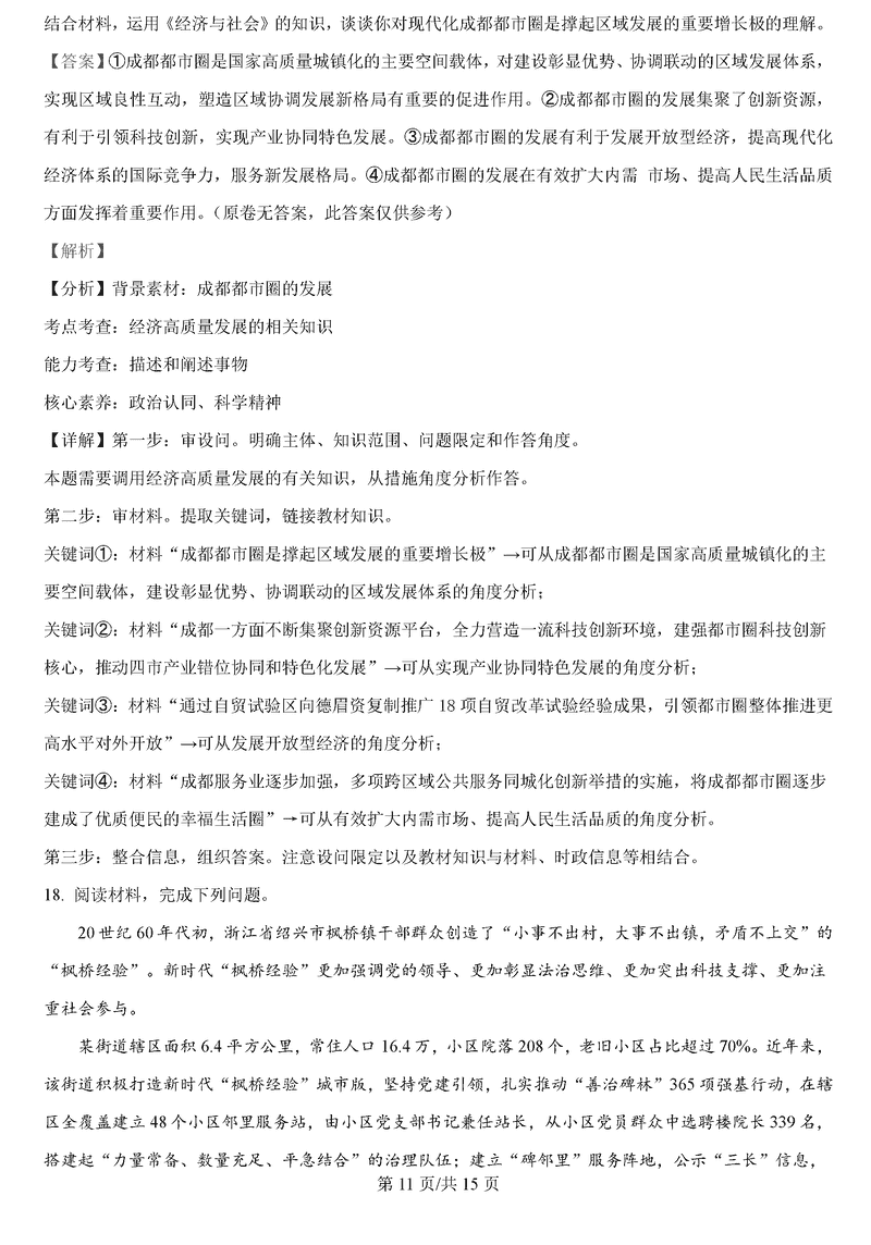 四川 文综试题