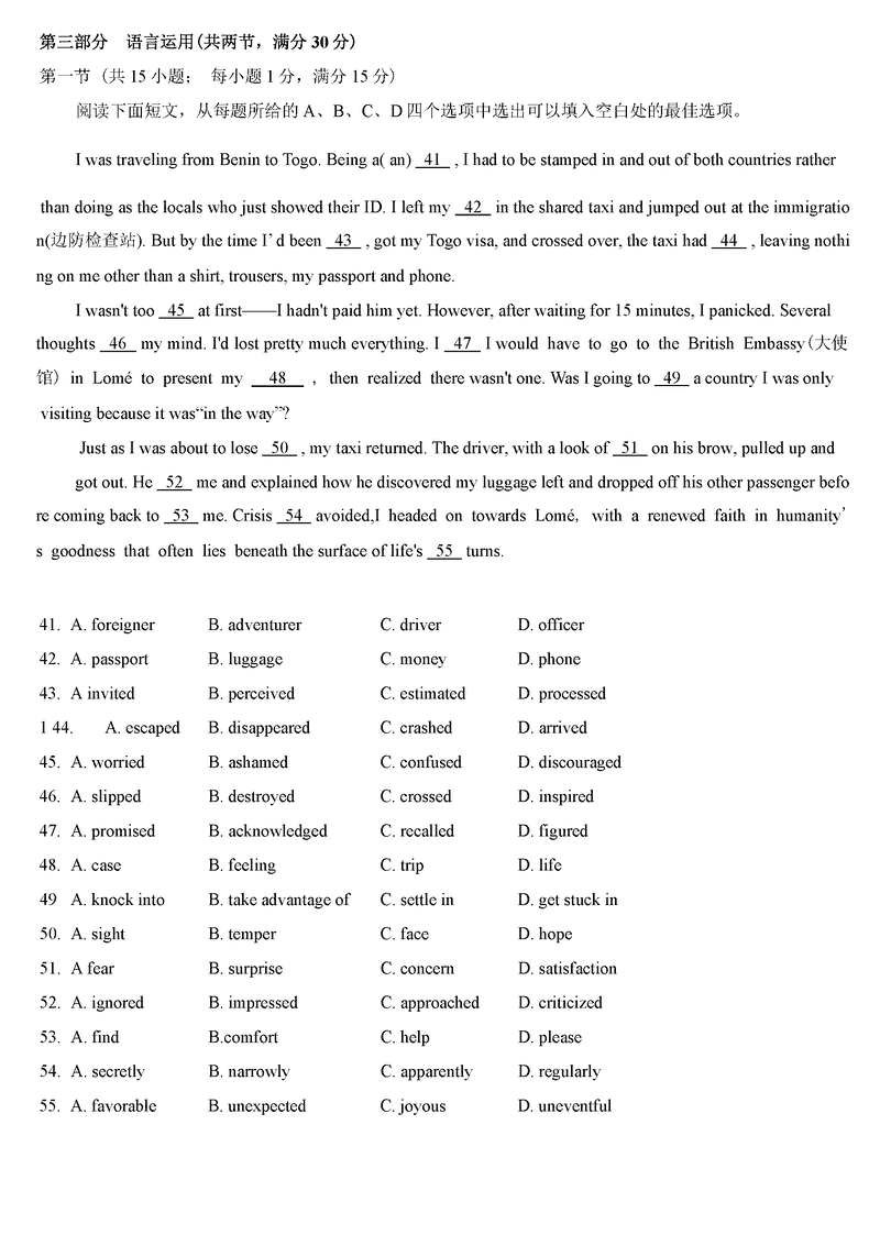 四川 英语试题