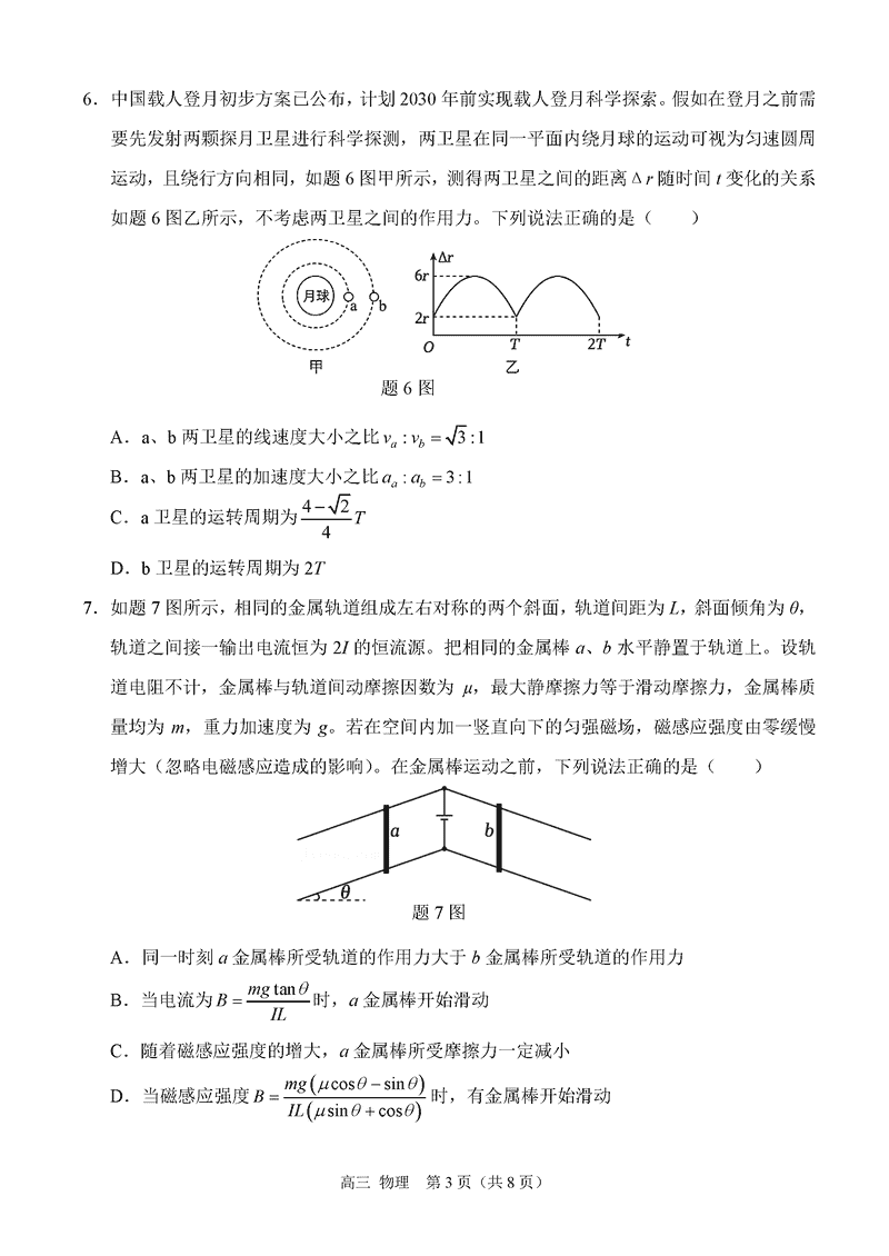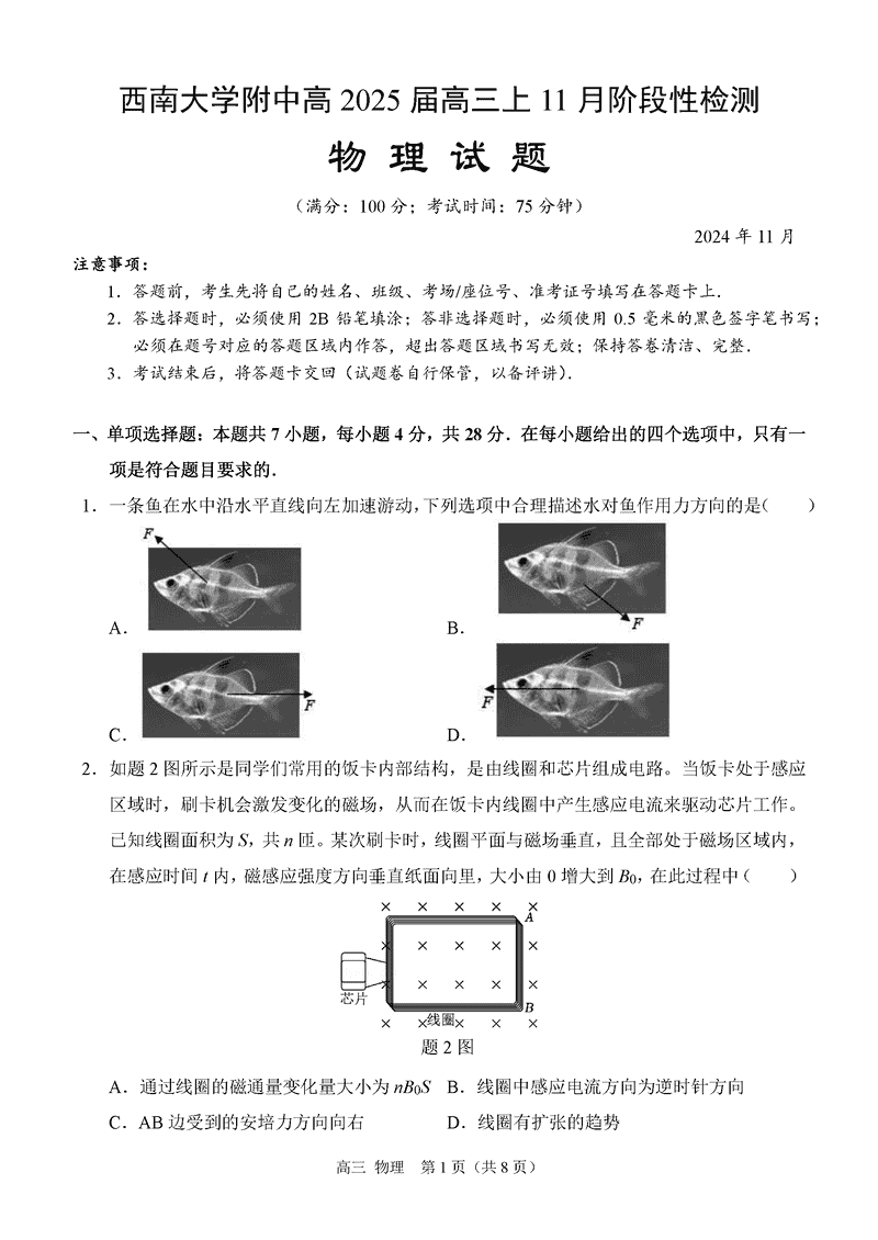 重庆西南大学附中2025届高三上学期11月阶段性检测(二)物理考试已于近日开考,为方便考生考后及时查看考试情况,查漏补缺、弥补不足,本文整理了试题答案解析相关信息!