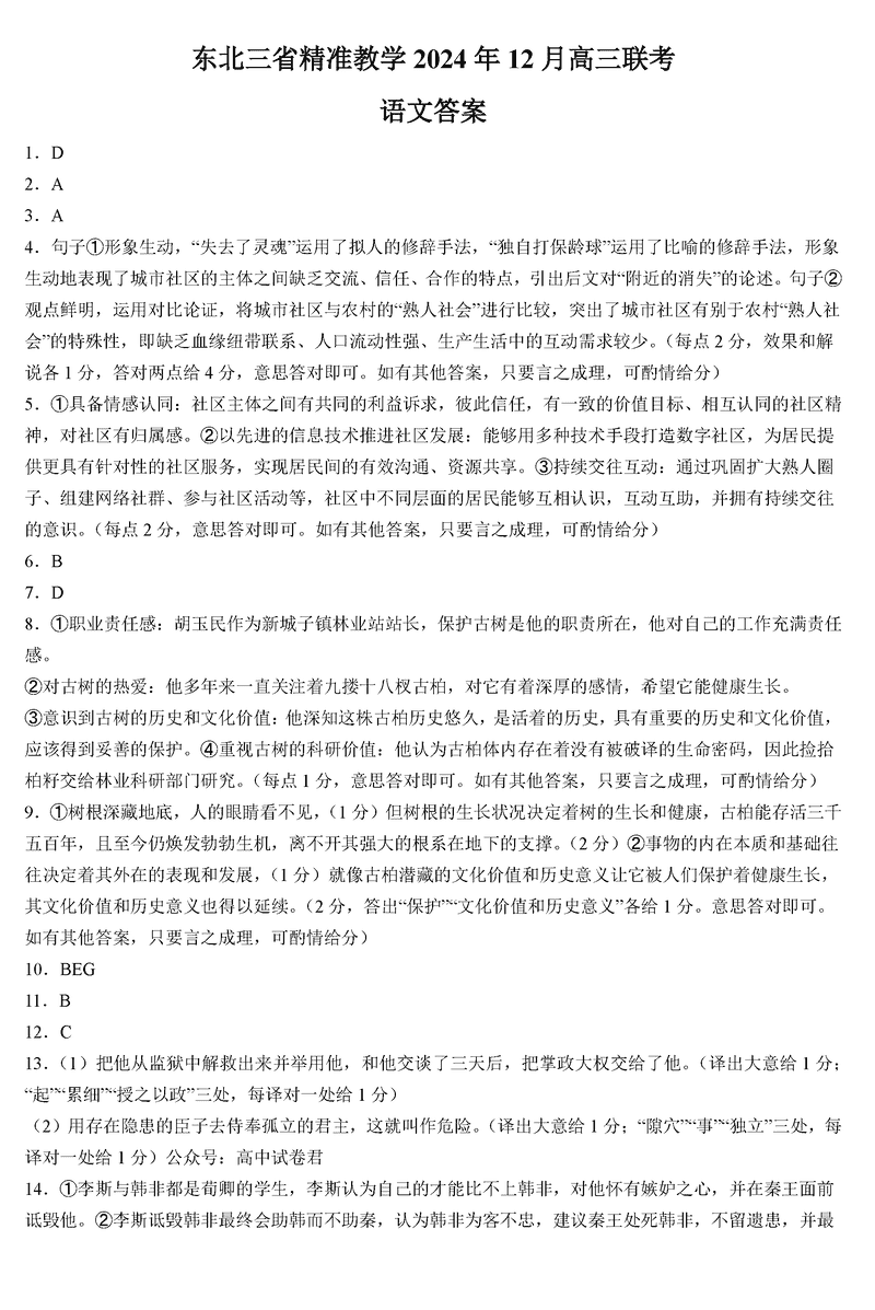 东北三省精准教学2025届高三上学期12月联考语文考试已于近日开考,为方便考生考后及时查看考试情况,查漏补缺、弥补不足,本文整理了试题答案解析相关信息!