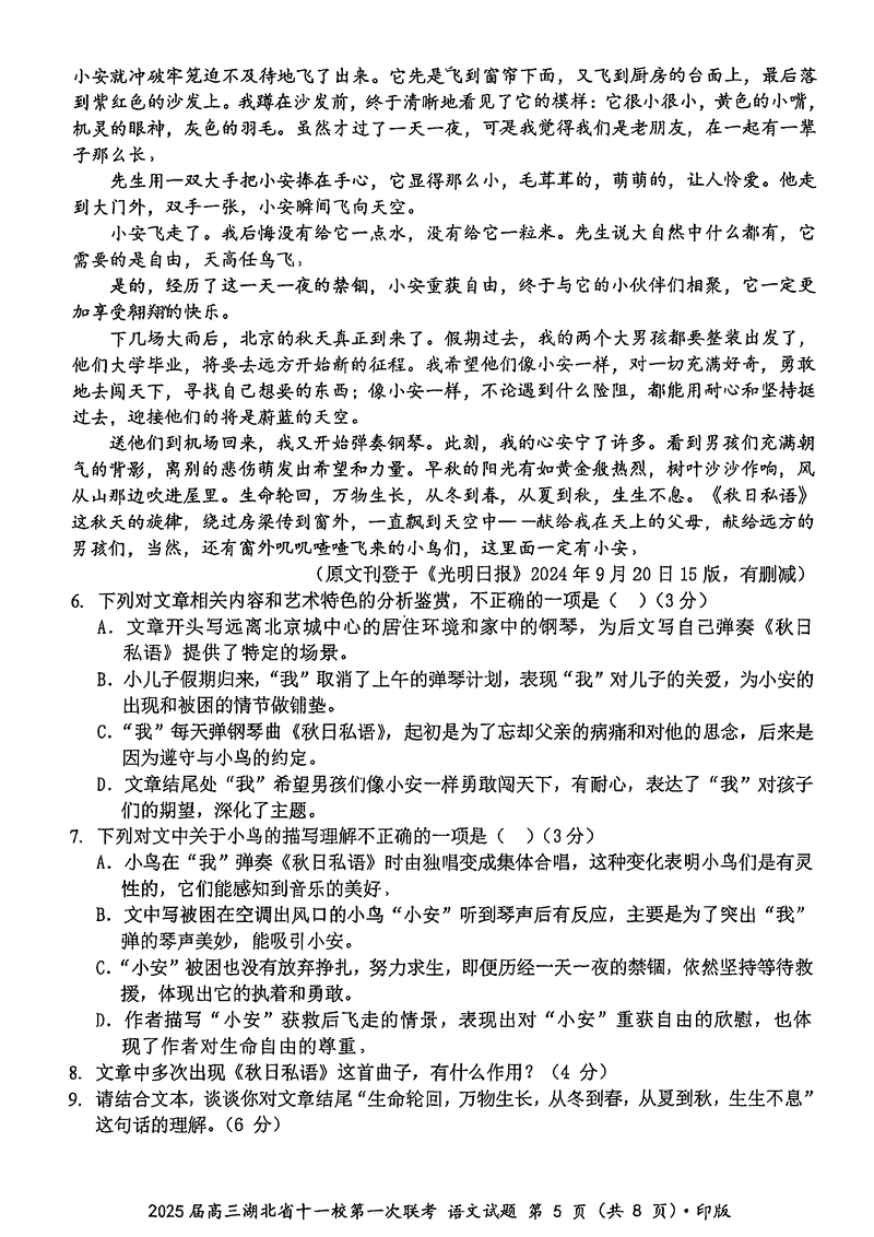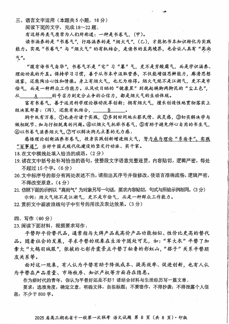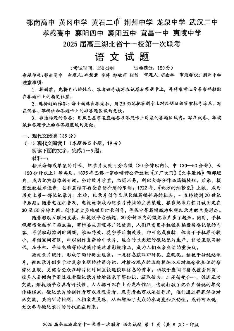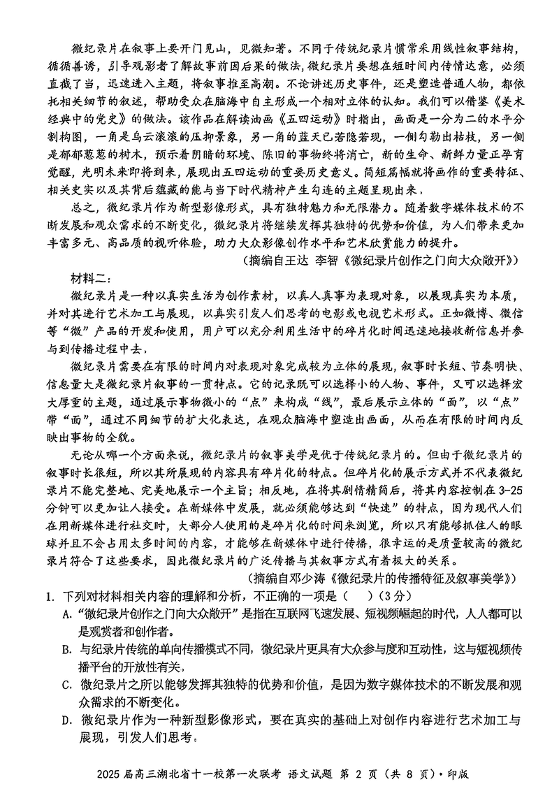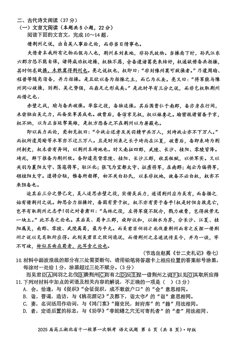 湖北十一校2025届高三12月第一次联考语文试题及答案