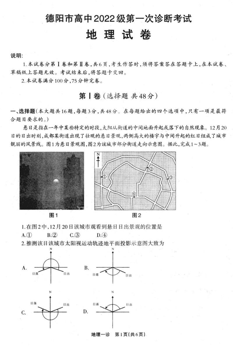 德阳一诊2025届高三第一次诊断考试地理试题及答案 时间:2024-12-05 17:14 四川 文综试题 德阳一诊2025届高三第一次诊断地理考试已于近日开考,为方便考生考后及时查看考试情况,查漏补缺、弥补不足,本文整理了试题答案解析相关信息! 汇总:德阳一诊2025届高三第一次诊断考试试题及答案汇总 地理试题及答案解析