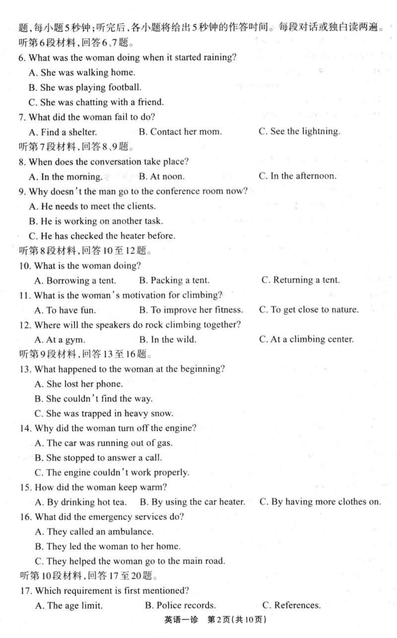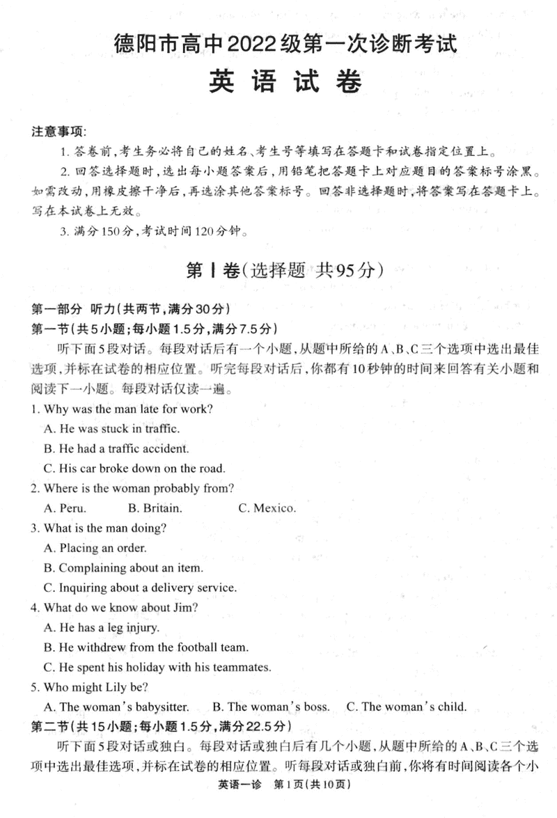 德阳一诊2025届高三第一次诊断考试英语试题及答案 时间:2024-12-05 17:19 四川 英语试题 德阳一诊2025届高三第一次诊断英语考试已于近日开考,为方便考生考后及时查看考试情况,查漏补缺、弥补不足,本文整理了试题答案解析相关信息! 汇总:德阳一诊2025届高三第一次诊断考试试题及答案汇总 英语试题及答案解析
