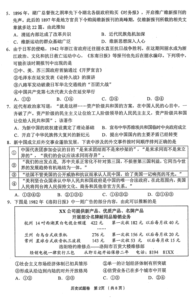 金丽衢十二校2024年高三上学期第一次联考历史试题及答案