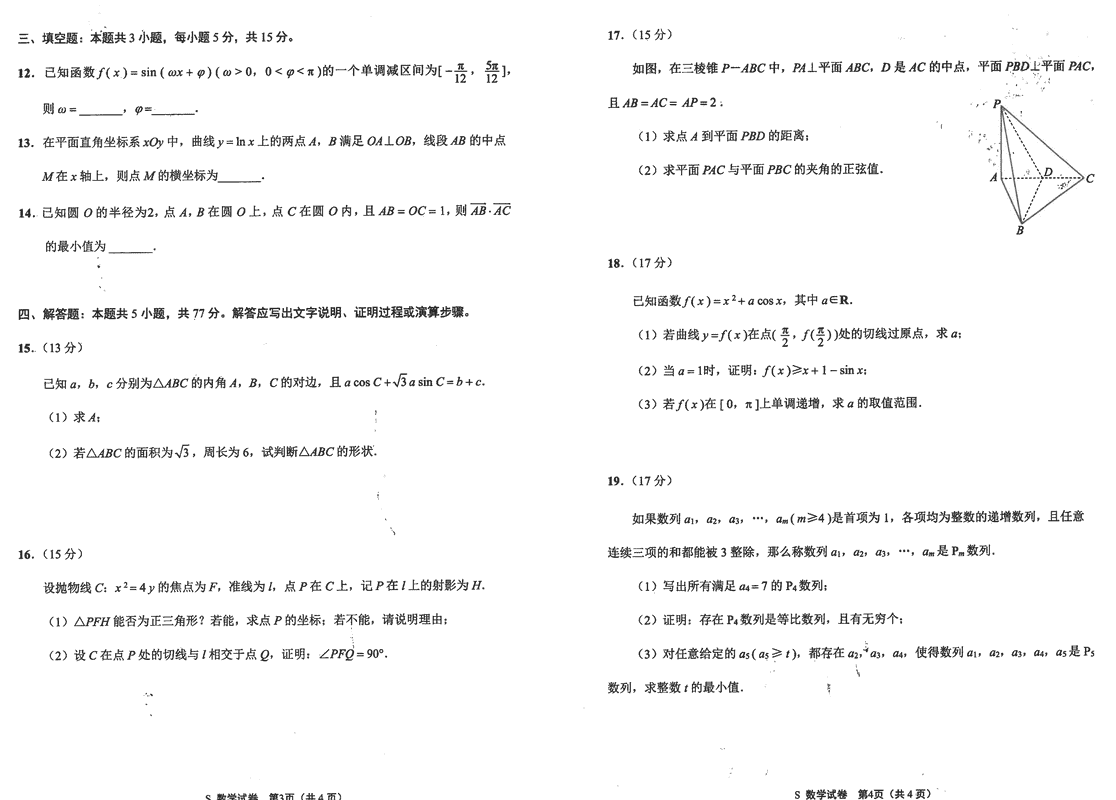 海安高级中学2025届高三上学期期中数学试题及答案