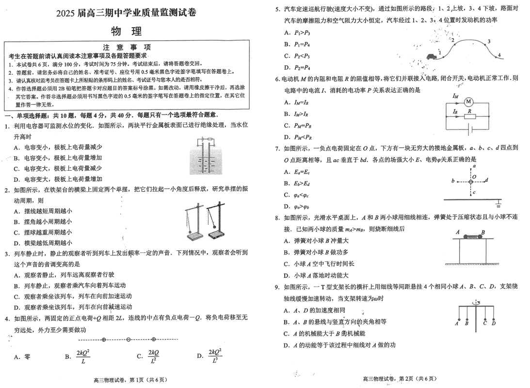 海安高级中学2025届高三上学期期中物理试题及答案