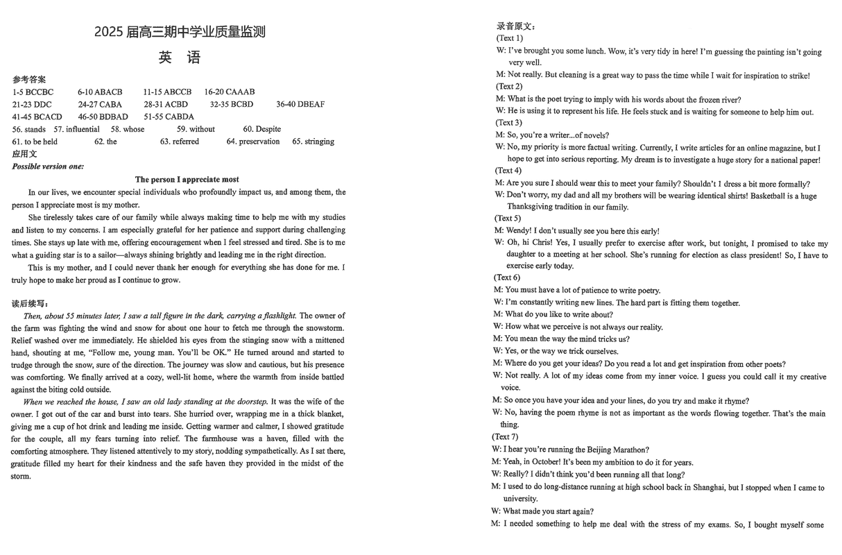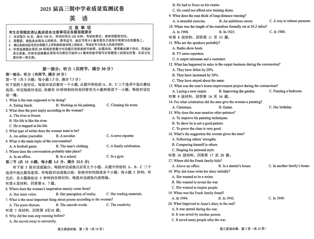 海安高级中学2025届高三上学期期中英语考试已于近日开考,为方便考生考后及时查看考试情况,查漏补缺、弥补不足,本文整理了试题答案解析相关信息!