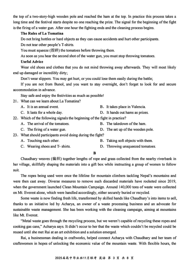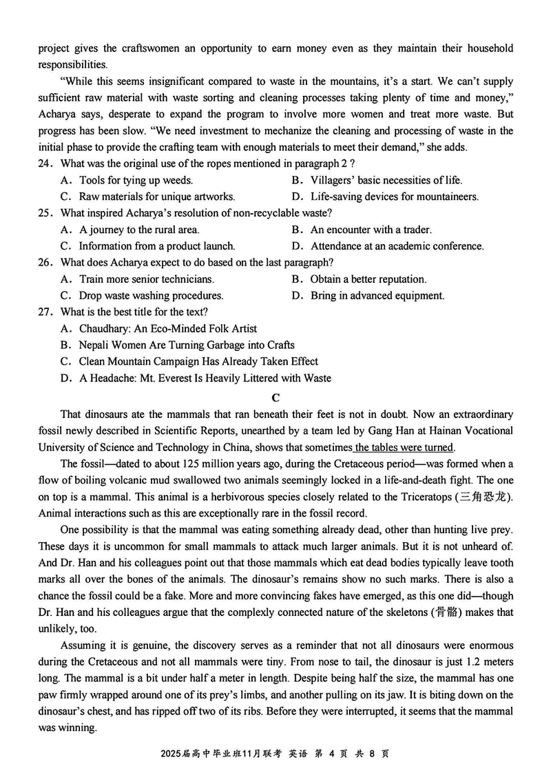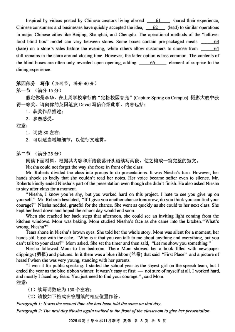 广西新课程教研联盟2025届高三11月联英语试题及答案