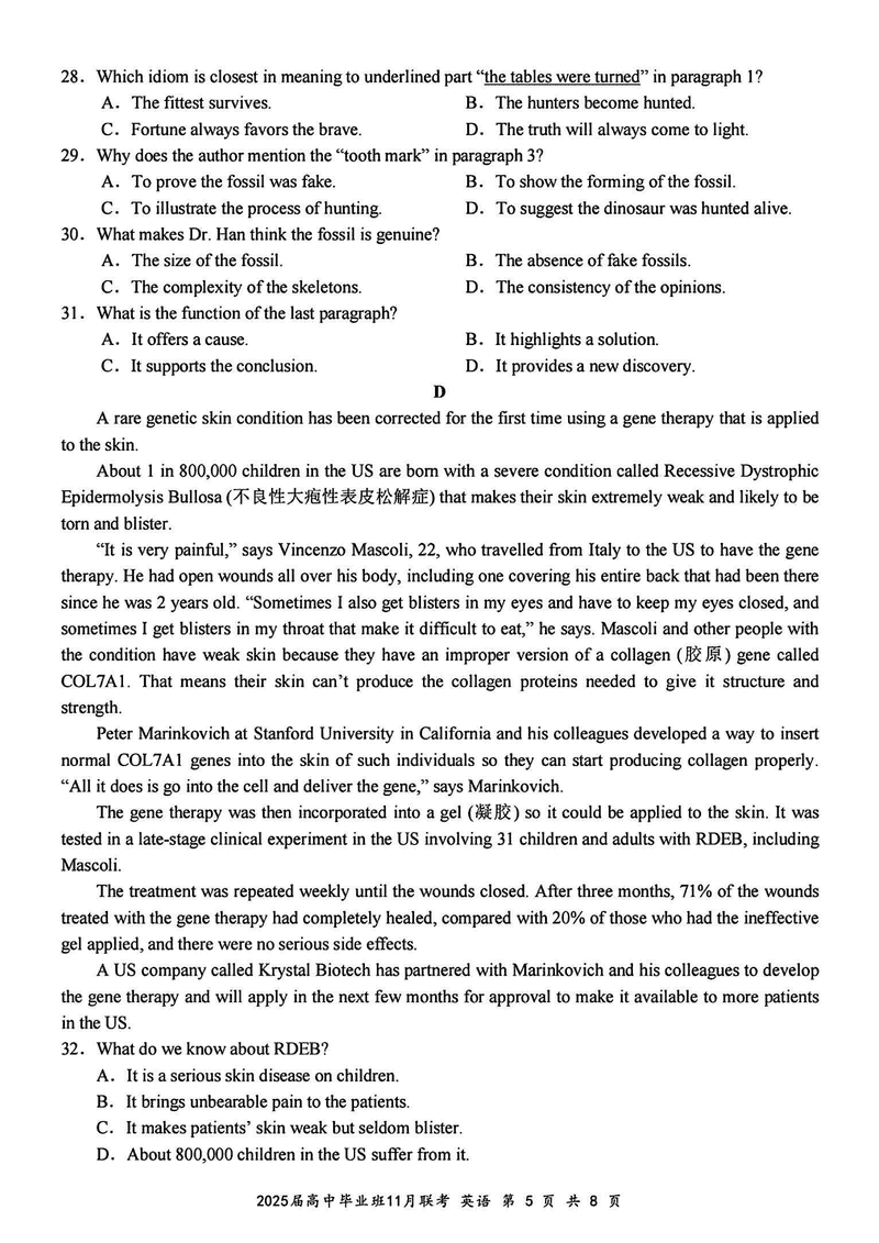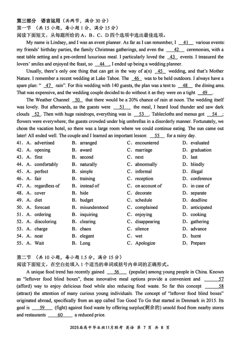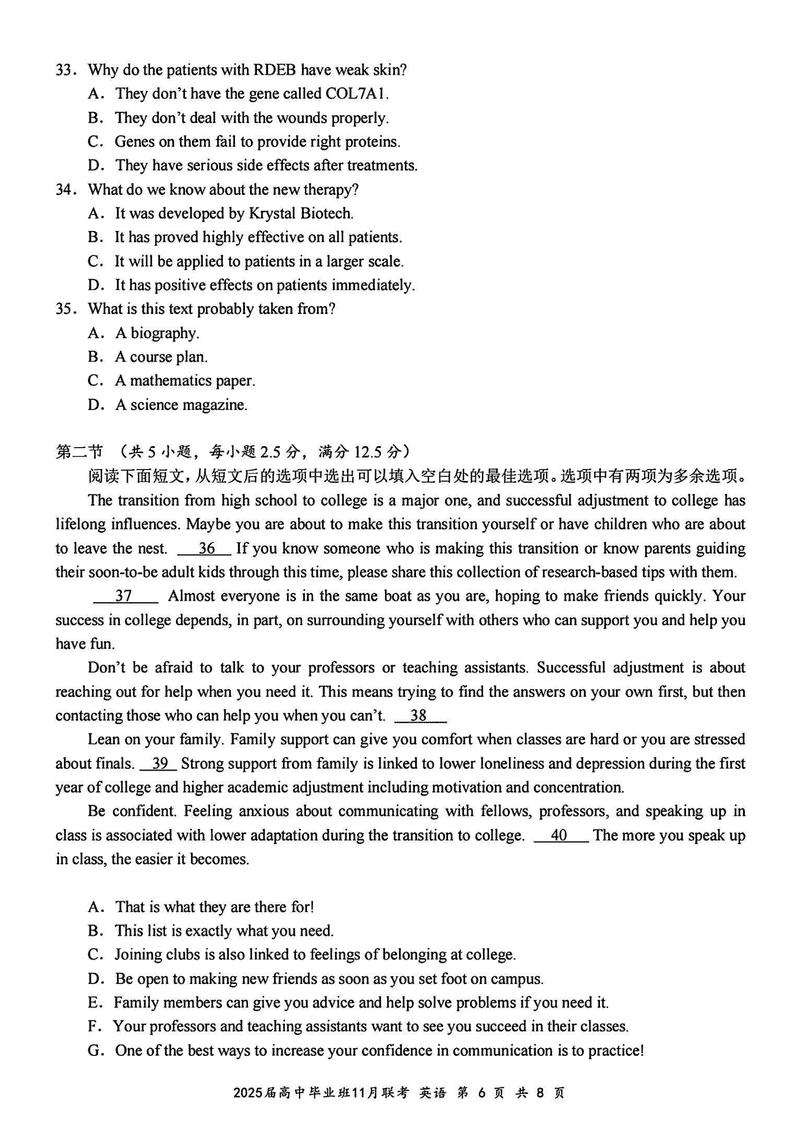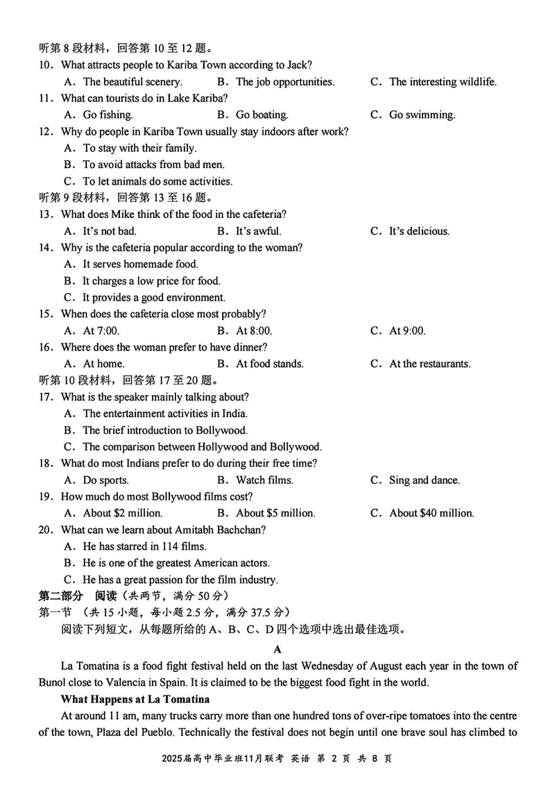 广西新课程教研联盟2025届高三11月联英语试题及答案