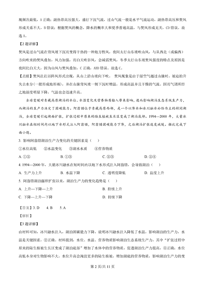 地理试题及答案解析