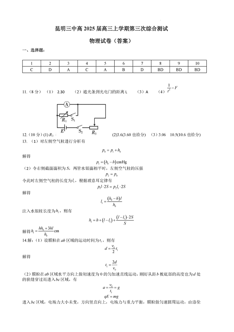 昆明三中2024-2025学年高三上学期11月月考物理考试已于近日开考,为方便考生考后及时查看考试情况,查漏补缺、弥补不足,本文整理了试题答案解析相关信息!