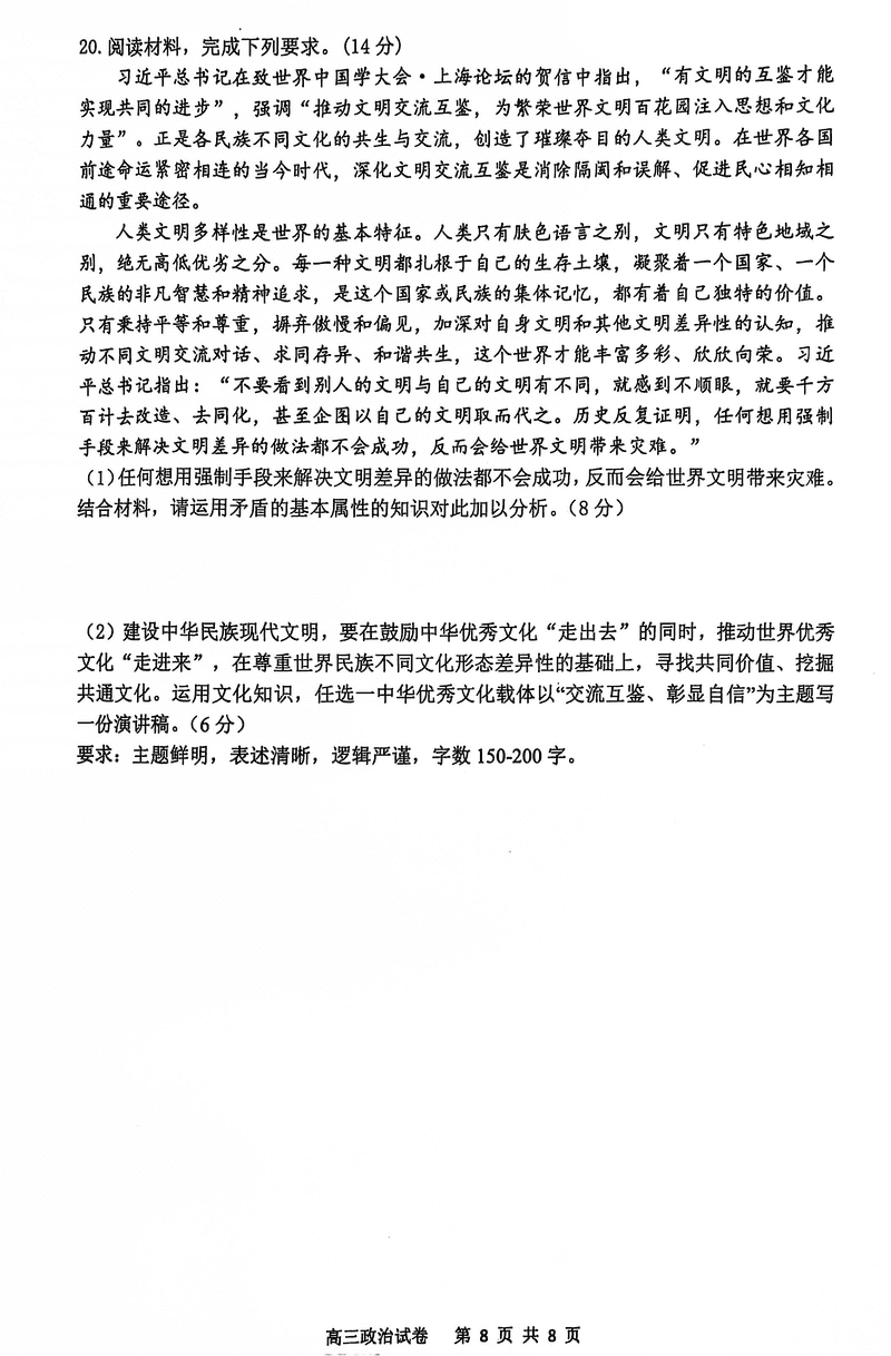 大连滨城高中联盟2025届高三上学期期中Ⅱ政治试题及答案