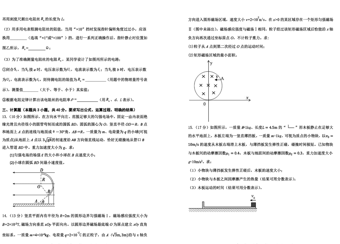 大连滨城高中联盟2025届高三上学期期中Ⅱ物理试题及答案