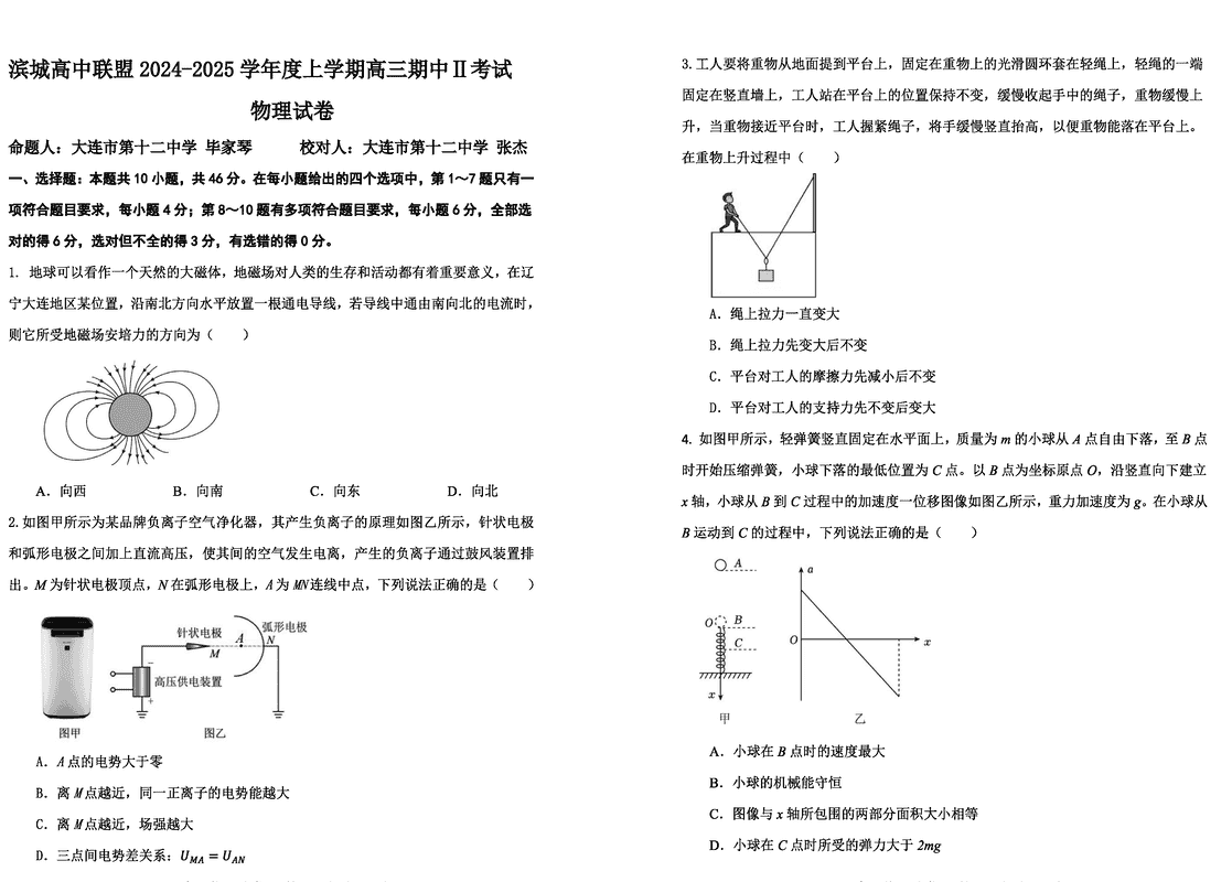 大连滨城高中联盟2025届高三上学期期中Ⅱ物理考试已于近日开考,为方便考生考后及时查看考试情况,查漏补缺、弥补不足,本文整理了试题答案解析相关信息!