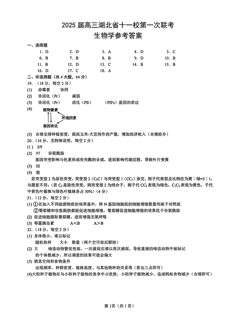 湖北十一校2025届高三12月第一次联考生物试题及答案