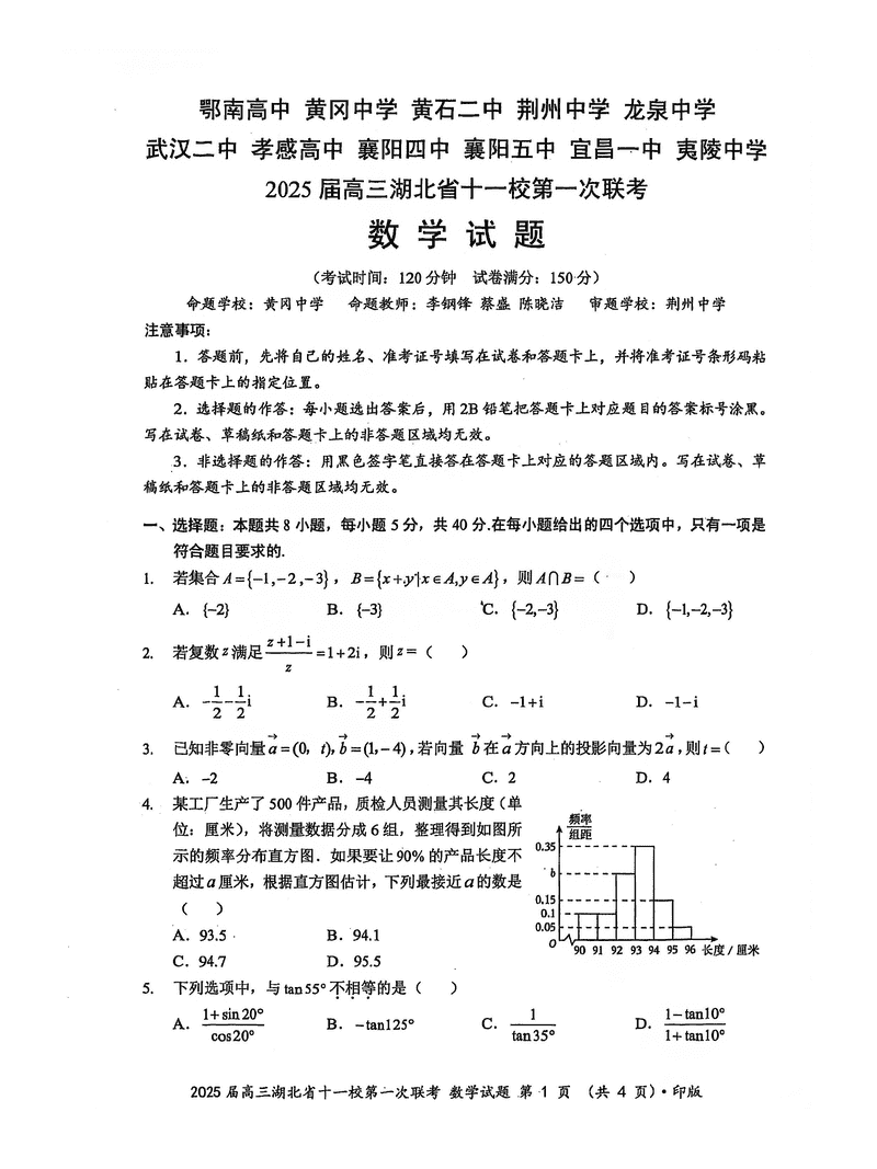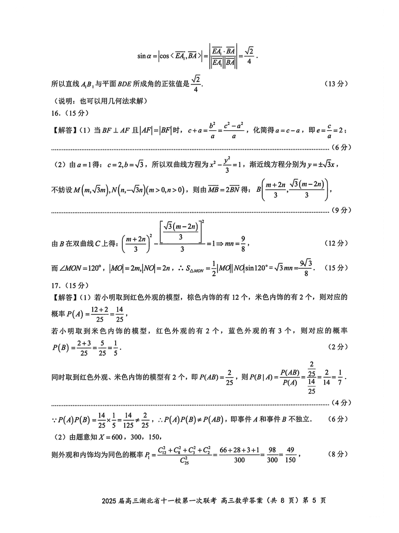 湖北十一校2025届高三12月第一次联考数学试题及答案
