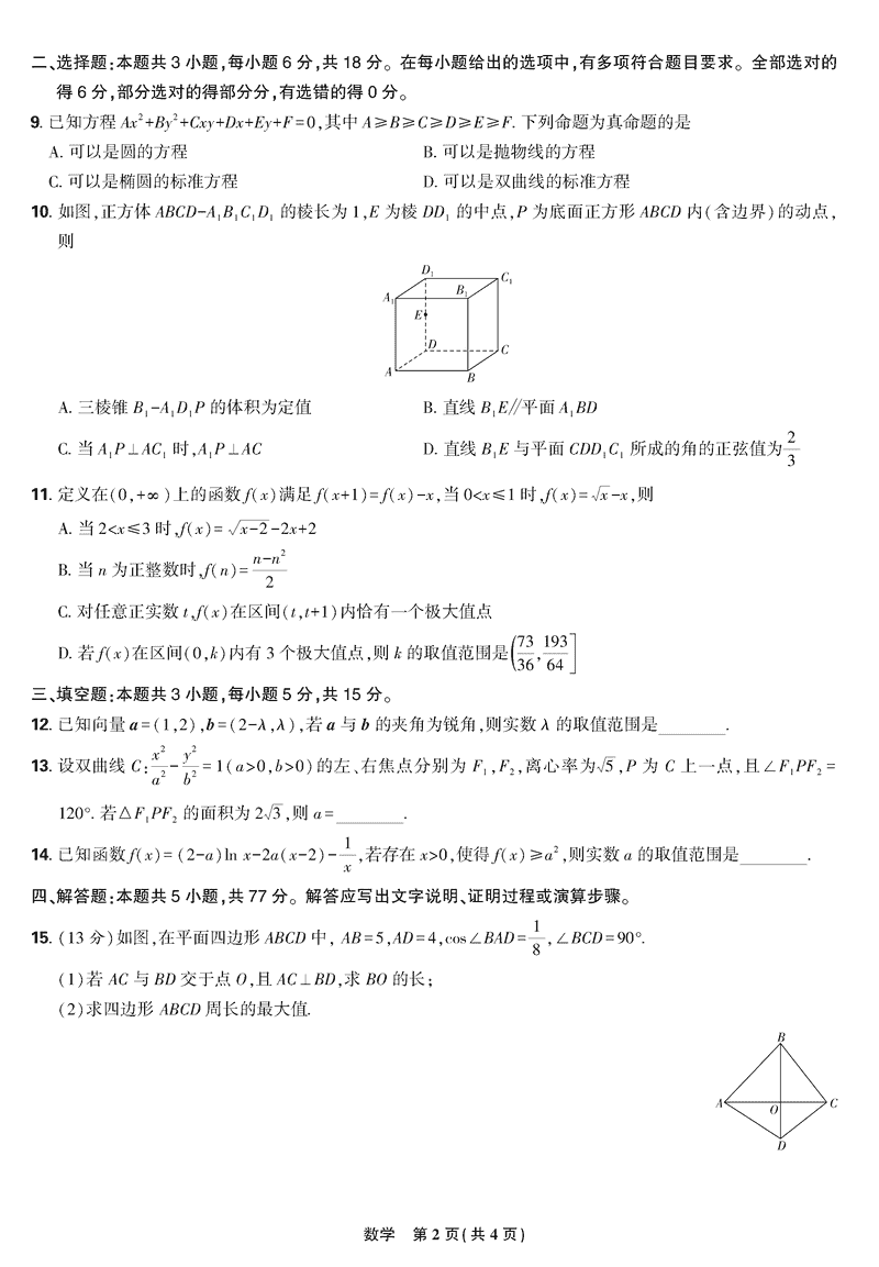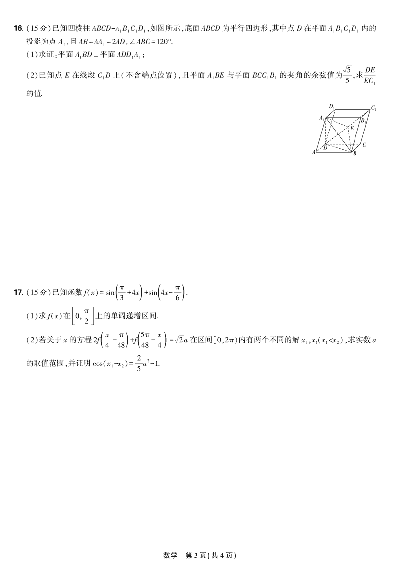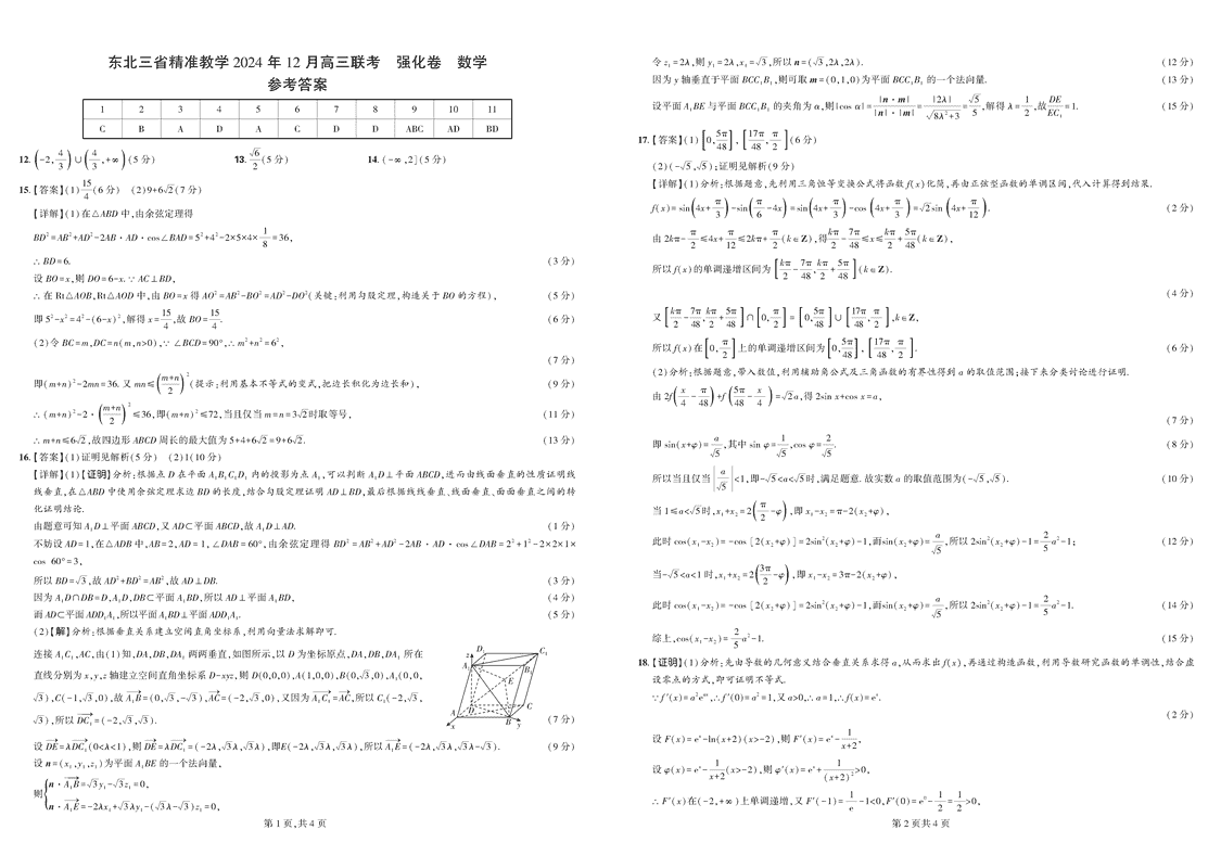 东北三省精准教学2025届高三上学期12月联考数学试题及答案