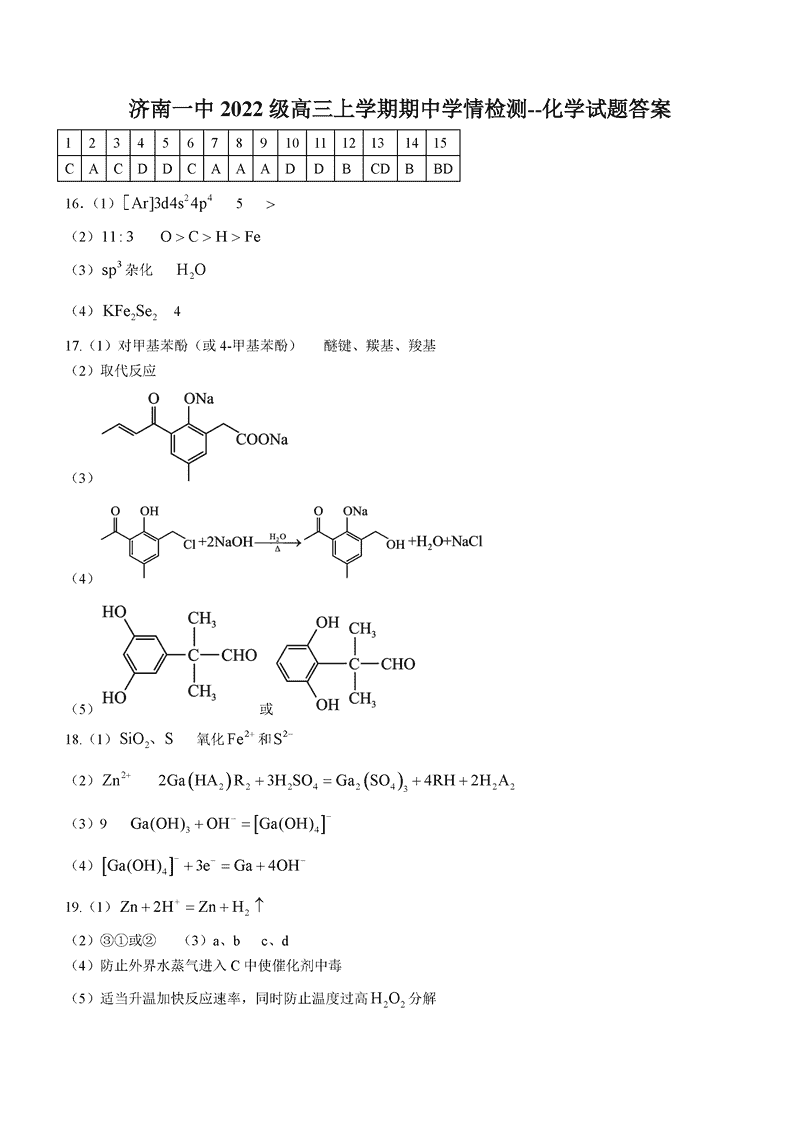 济南一中2025届高三上学期期中学情检测化学考试已于近日开考,为方便考生考后及时查看考试情况,查漏补缺、弥补不足,本文整理了试题答案解析相关信息!