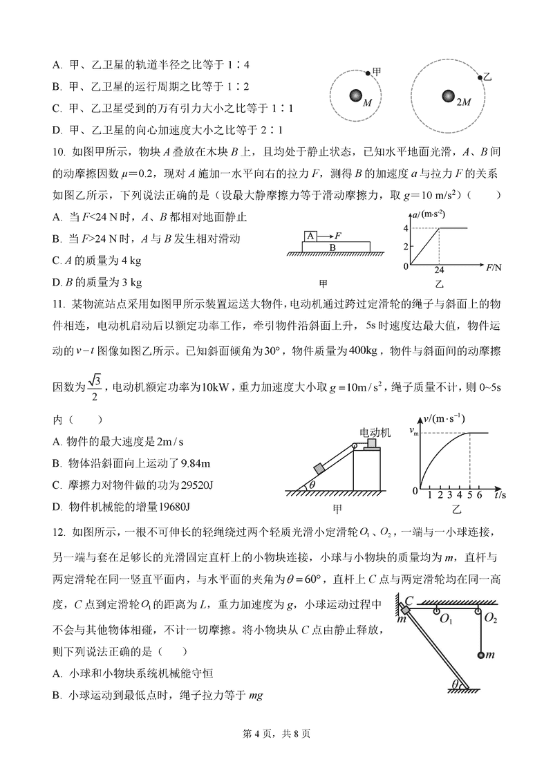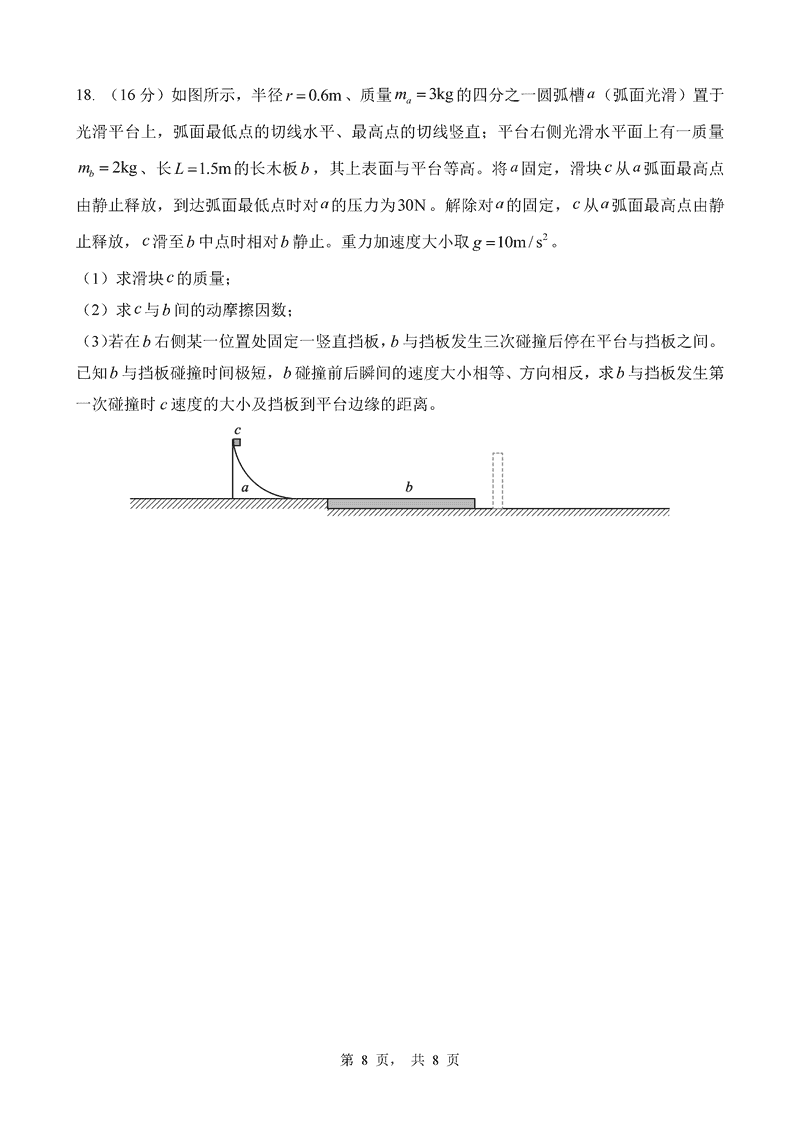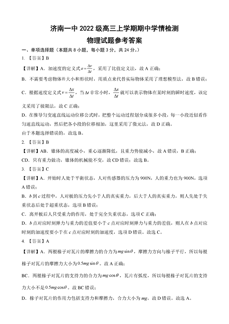 济南一中2025届高三上学期期中学情检测物理试题及答案