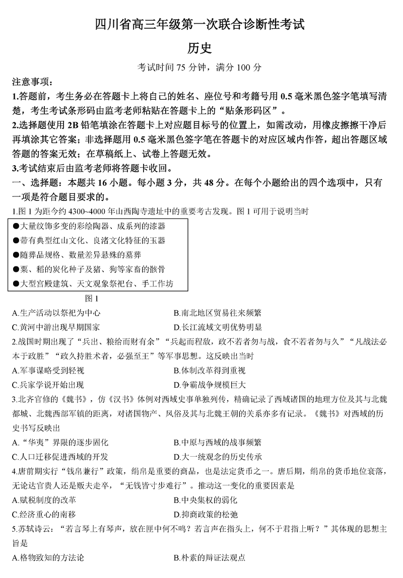 四川蓉城名校联盟2025届高三上学期第一次联考历史考试已于近日开考,为方便考生考后及时查看考试情况,查漏补缺、弥补不足,本文整理了试题答案解析相关信息!