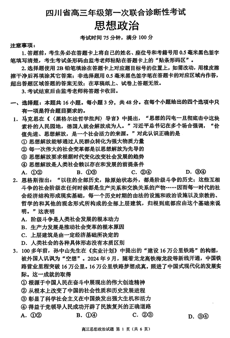 四川蓉城名校联盟2025届高三上学期第一次联考政治试题及答案
