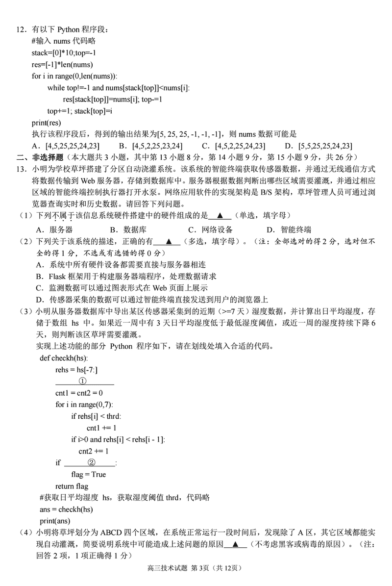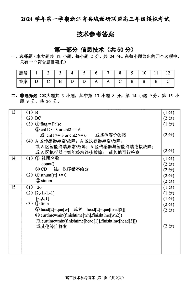 浙江县域教研联盟2025届高三上学期摸底考技术考试已于近日开考,为方便考生考后及时查看考试情况,查漏补缺、弥补不足,本文整理了试题答案解析相关信息!