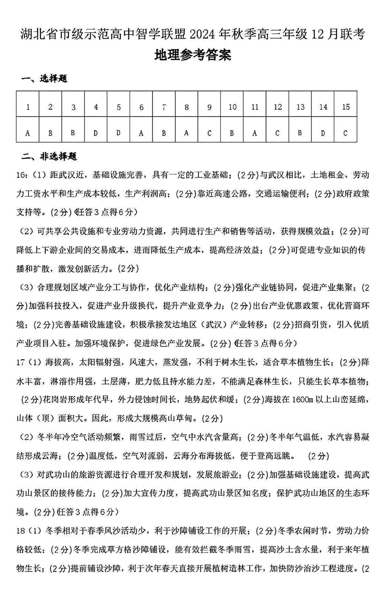 湖北智学联盟2024年秋季高三12月联考地理考试已于近日开考,为方便考生考后及时查看考试情况,查漏补缺、弥补不足,本文整理了试题答案解析相关信息!