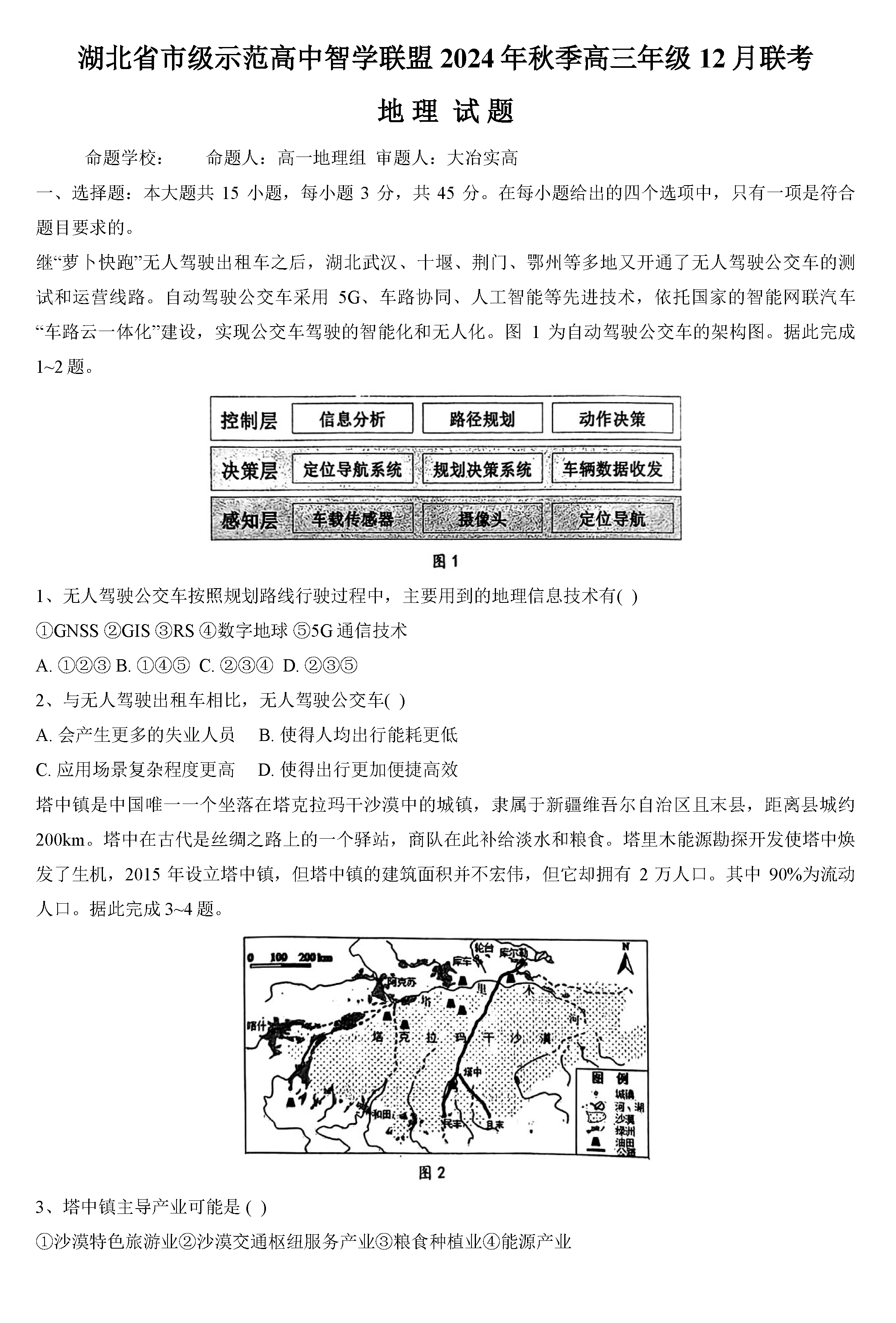 湖北智学联盟2024年秋季高三12月联考地理试题及答案
