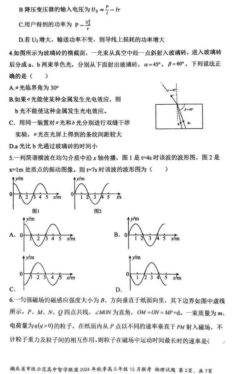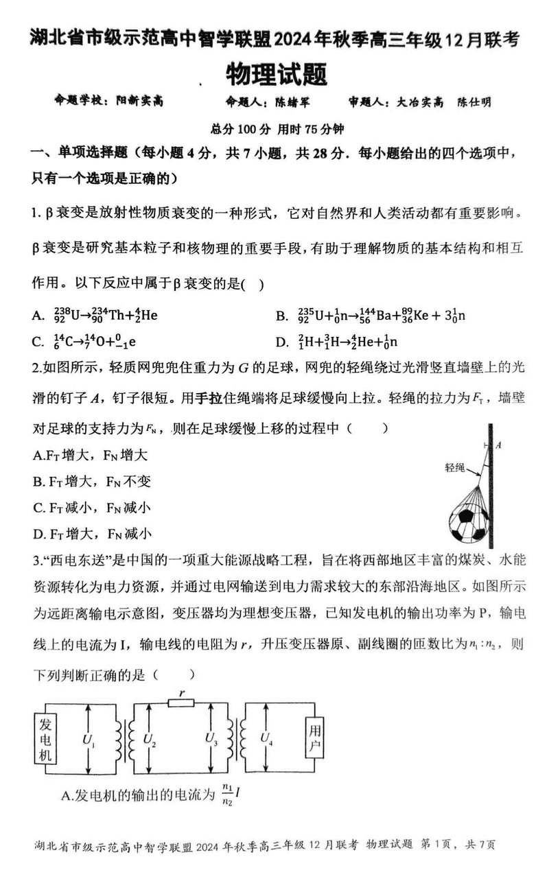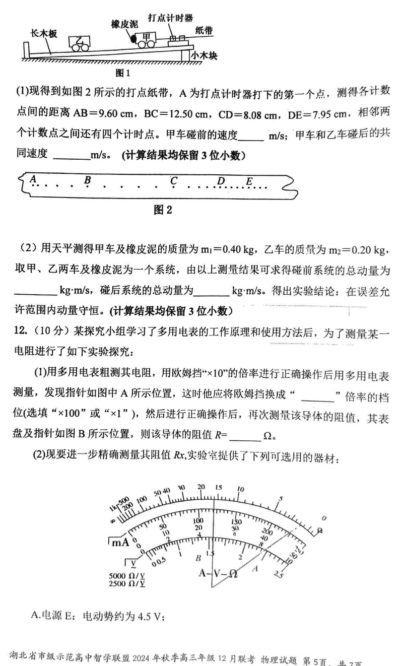 湖北智学联盟2024年秋季高三12月联考物理考试已于近日开考,为方便考生考后及时查看考试情况,查漏补缺、弥补不足,本文整理了试题答案解析相关信息!