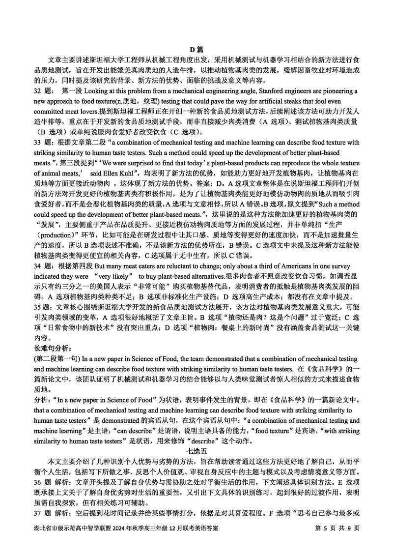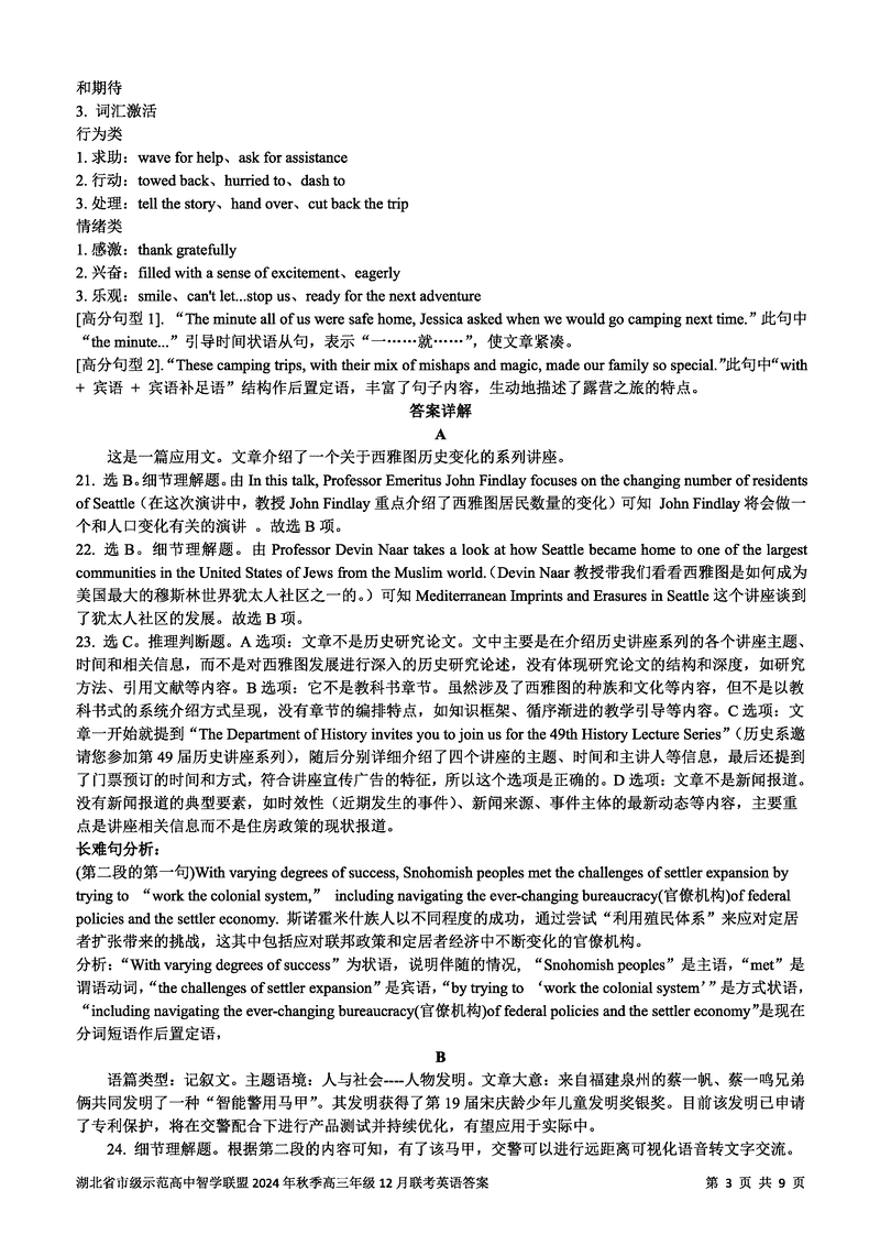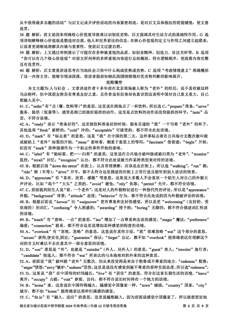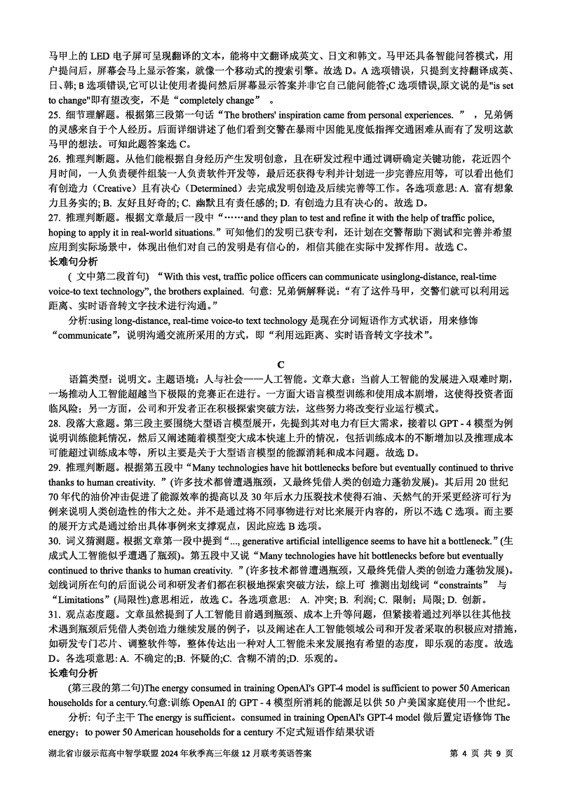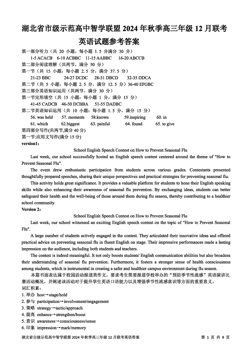 湖北智学联盟2024年秋季高三12月联考英语考试已于近日开考,为方便考生考后及时查看考试情况,查漏补缺、弥补不足,本文整理了试题答案解析相关信息!