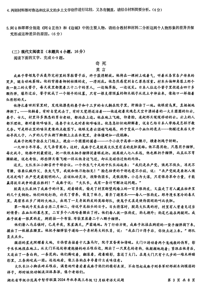 湖北智学联盟2024年秋季高三12月联考语文考试已于近日开考,为方便考生考后及时查看考试情况,查漏补缺、弥补不足,本文整理了试题答案解析相关信息!