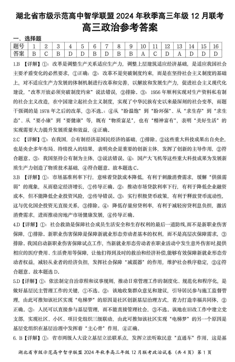 湖北智学联盟2024年秋季高三12月联考政治考试已于近日开考,为方便考生考后及时查看考试情况,查漏补缺、弥补不足,本文整理了试题答案解析相关信息!