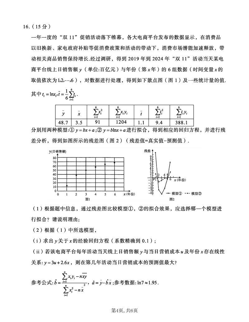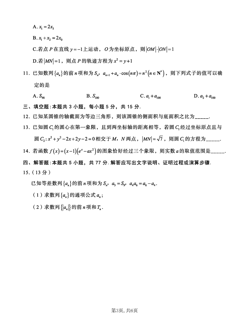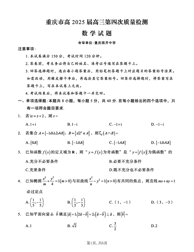 重庆南开中学2025届高三第四次质检数学试题及答案