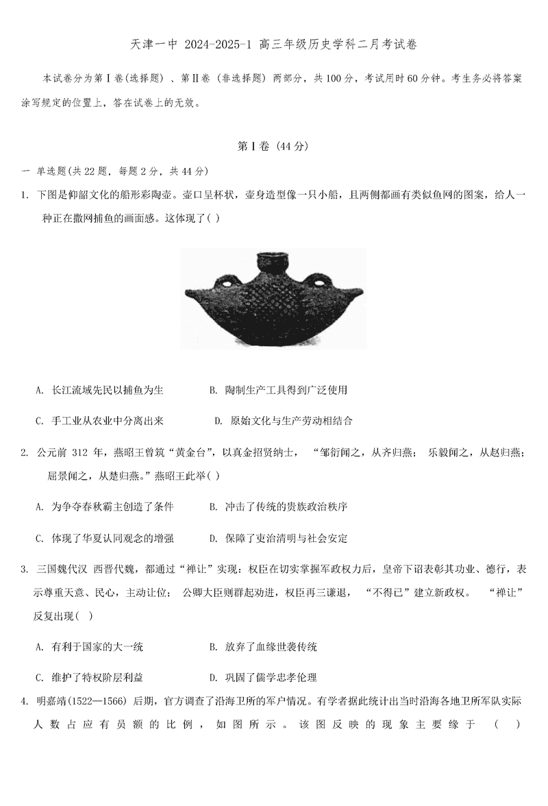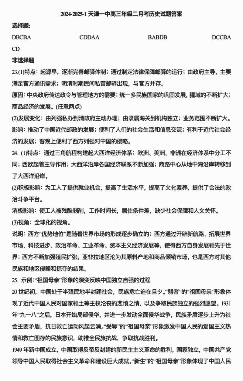 天津一中2024年高三上学期第二次月考历史考试已于近日开考,为方便考生考后及时查看考试情况,查漏补缺、弥补不足,本文整理了试题答案解析相关信息!