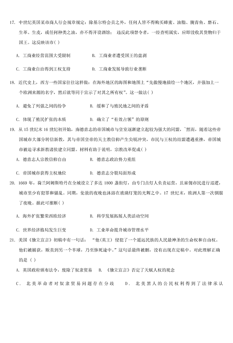 天津一中2024年高三上学期第二次月考历史试题及答案