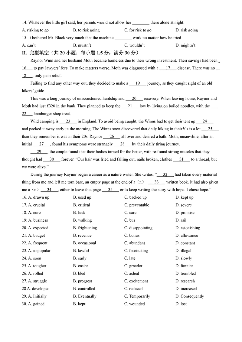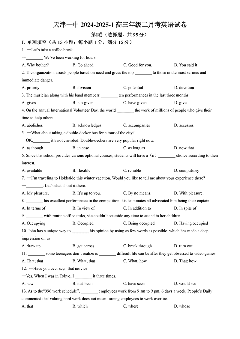 天津一中2024年高三上学期第二次月考英语考试已于近日开考,为方便考生考后及时查看考试情况,查漏补缺、弥补不足,本文整理了试题答案解析相关信息!