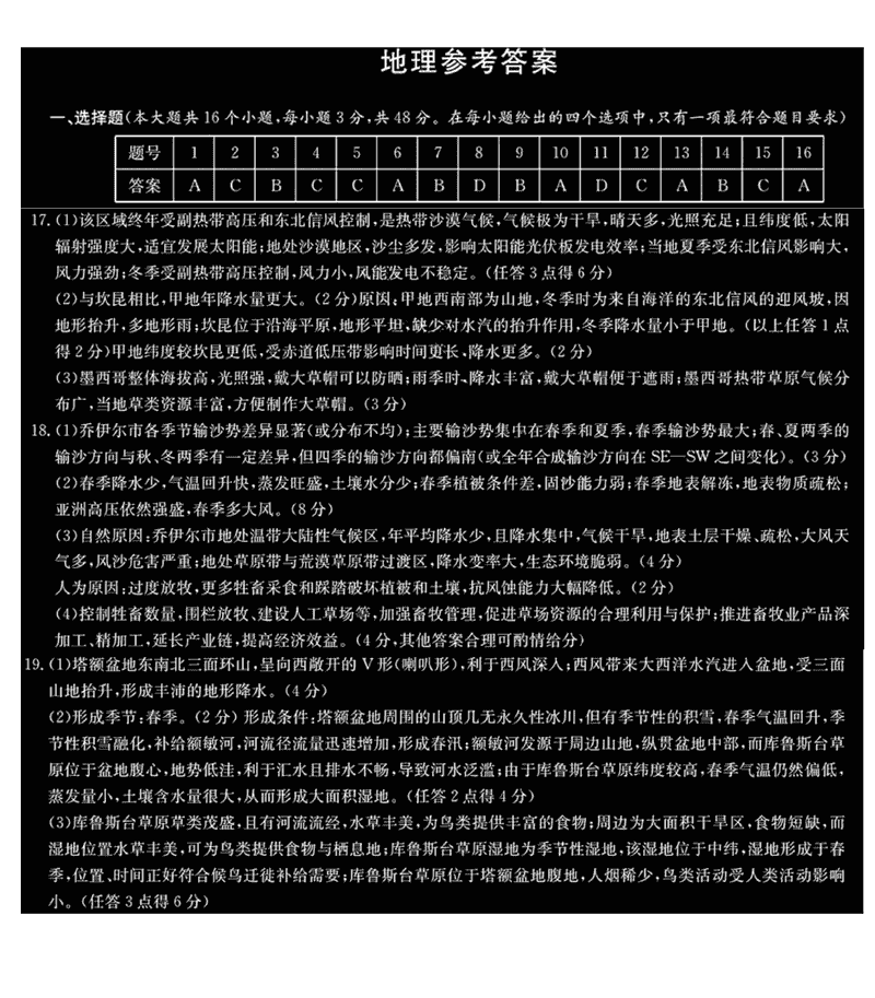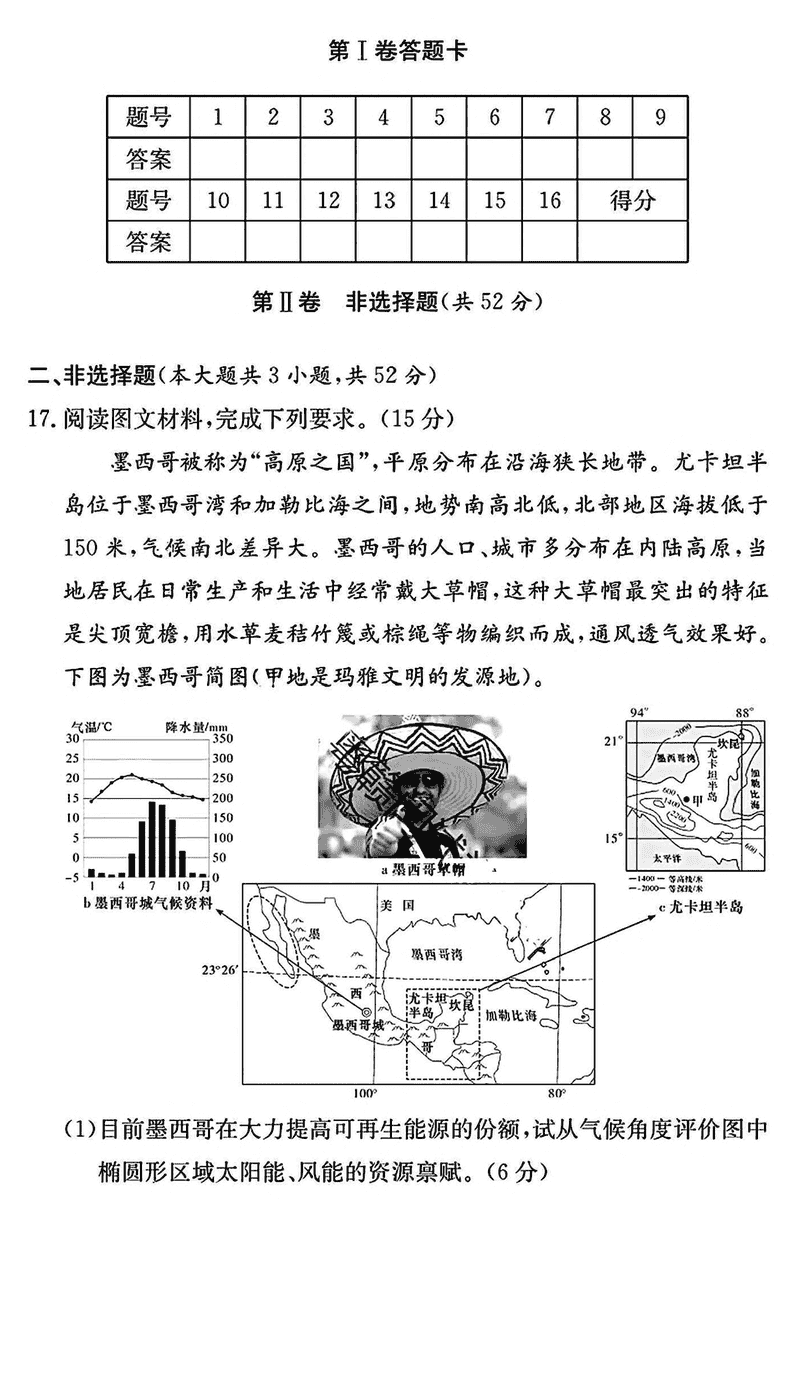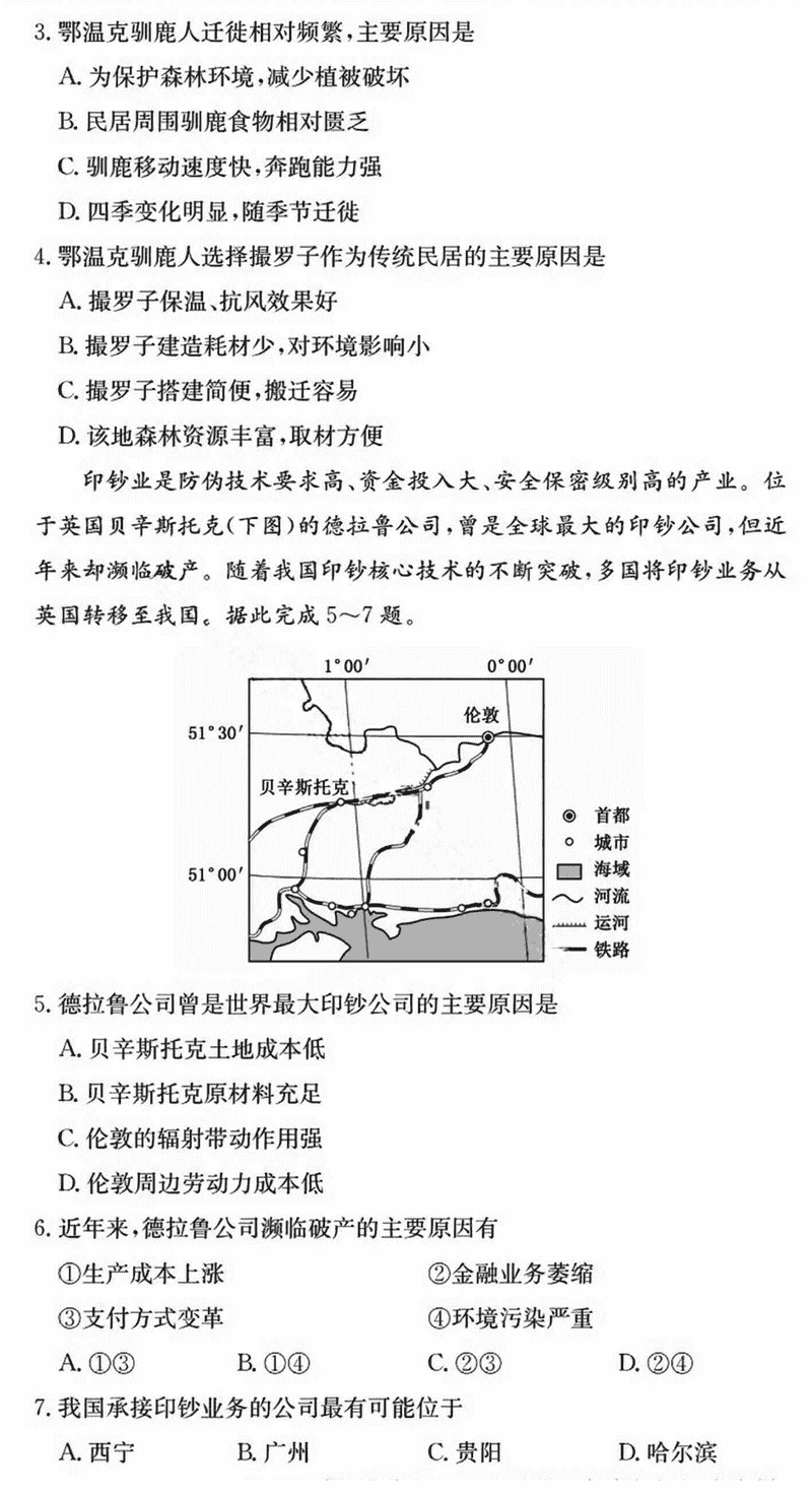 地理试题及答案解析