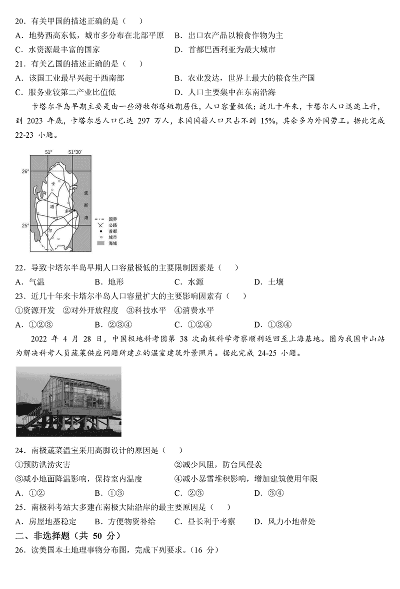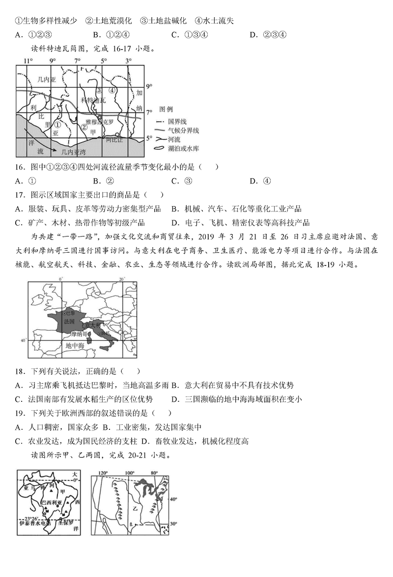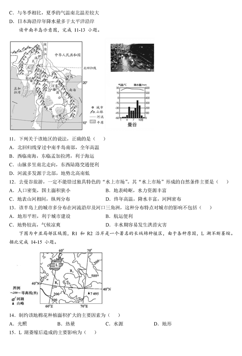 地理试题及答案解析