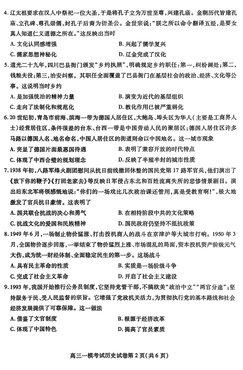 四川内江2025届高三上学期一模历史考试已于近日开考,为方便考生考后及时查看考试情况,查漏补缺、弥补不足,本文整理了试题答案解析相关信息!