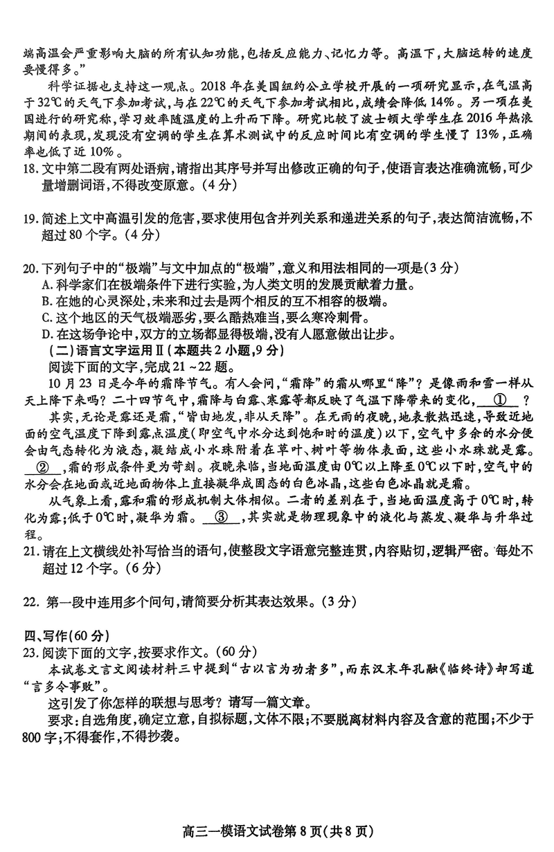 四川内江2025届高三上学期一模语文试题及答案 时间:2024-12-10 22:03 四川 语文试题 四川内江2025届高三上学期一模语文考试已于近日开考,为方便考生考后及时查看考试情况,查漏补缺、弥补不足,本文整理了试题答案解析相关信息! 汇总:四川内江2025届高三上学期一模试题及答案汇总 语文试题及答案解析